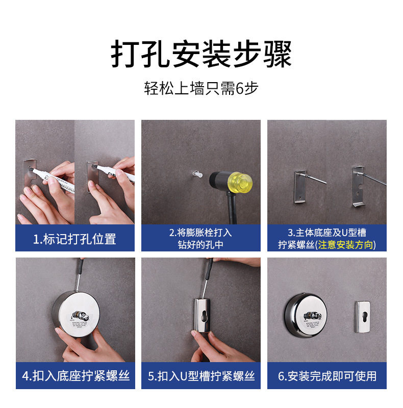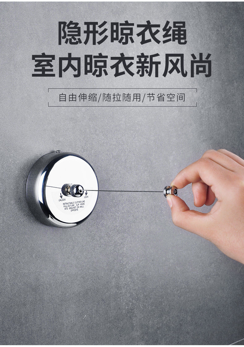 Bathroom Retractable Clothesline Wall-Mounted Balcony Clothes Drying Artifact Bathroom Indoor and Outdoor Invisible Retractable Clothes Drying Rack
