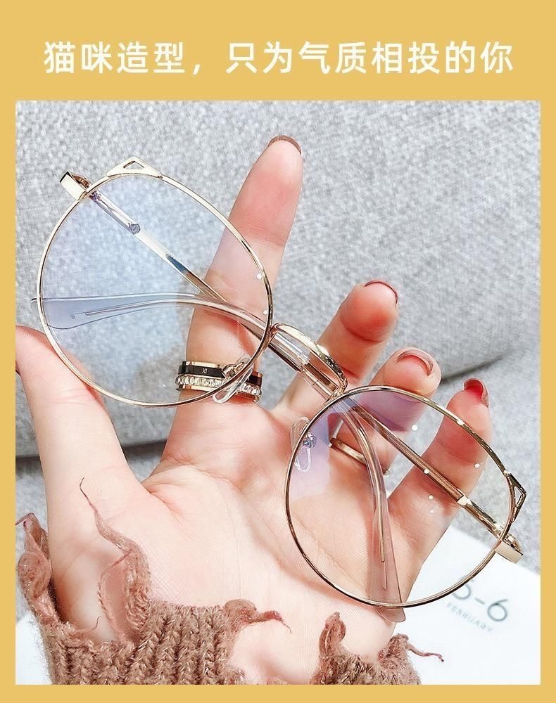 Kitten ear retro cute glasses frame female student ultra-light myopia degree blue light anti-fatigue plain face slimming