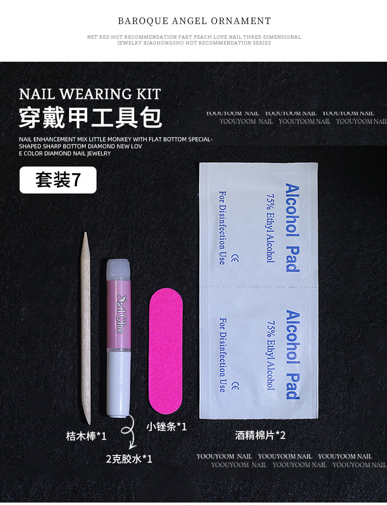 | color classification | Suit 1#3-piece set,suit 2#4-piece set,suit 5#5-piece set,suit 7#5-piece set,75mm orange stick 1,Mini rubbing strip 1,2G glue 1,Alcohol Tablet 1 tablet |