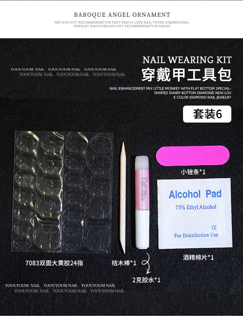 Wearing a kit wholesale double-sided jelly yellow gum alcohol cotton nail file glue nail material package suit