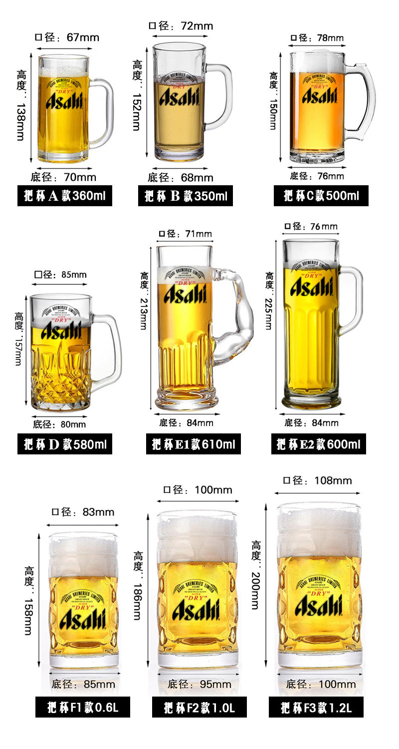 | Color | No. 1 350ml,No. 2 wide mouth 470ml,No. 3 570ml,No. 4 460ml,No. 5 imported wheat cup 285ml,No. 6 wheat cup 425ml (domestic),No. 6 imported wheat cup 425ml,No. 7 imported wheat cup 600ml,No. 8 imported wheat cup 680ml,No. 9 pint 592ml,No. 10 tall style 390ml,No. 11 special cool 350ml,No. 12 special cool 450ml,Handle cup type a 360ml,Handle cup type b 350ml,Handle cup c style 500ml,Handle cup d type 580ml,Handle cup e1 style 610ml,Handle cup e2 style 600ml,F1 cup style 0.6l,Handle cup f2 model 1.0l,Handle cup f3 model 1.2l |