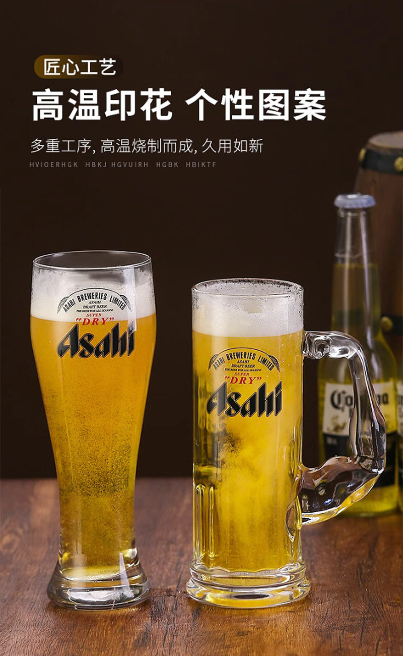 Asahi Thickened Beer Mug, Special Mug for Japanese Restaurants, Extra Large Capacity Beer Mug, Japanese Craft Beer Mug
