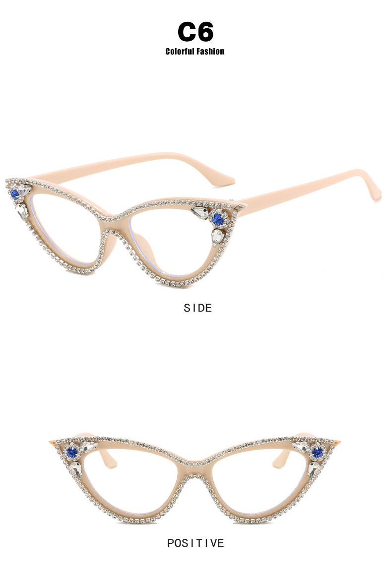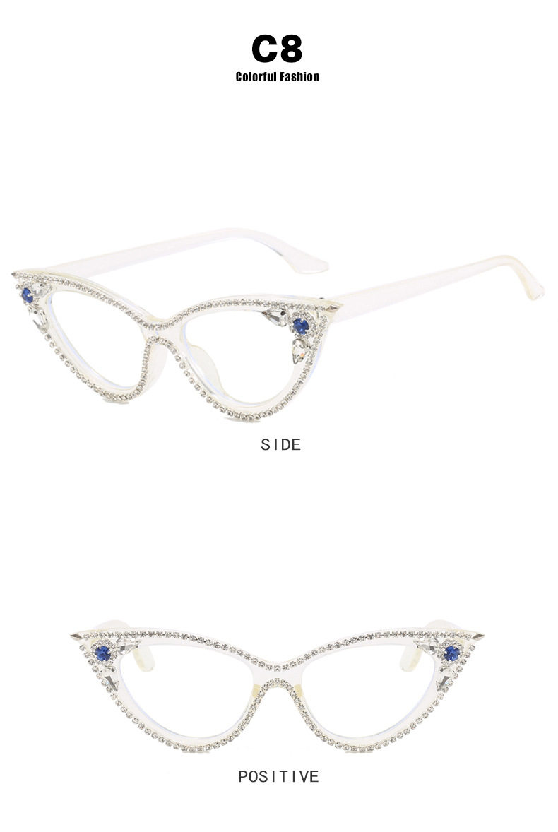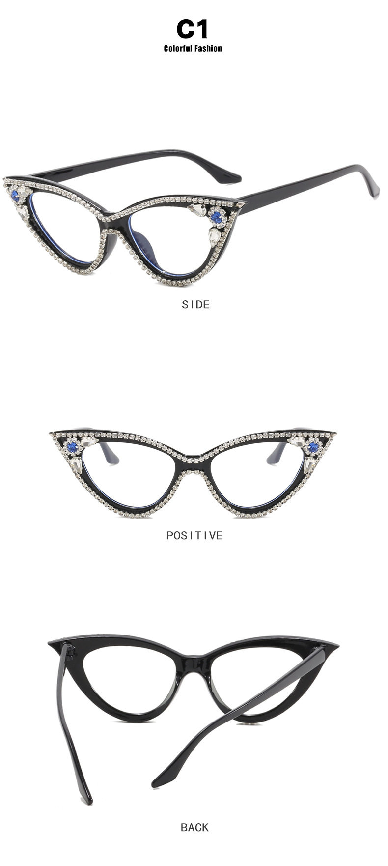 Kedun 2023 New Cat-Eye Rhinestone Flat Glasses for Prom and Party Decoration, European and American Trendy and Unique Eyewear