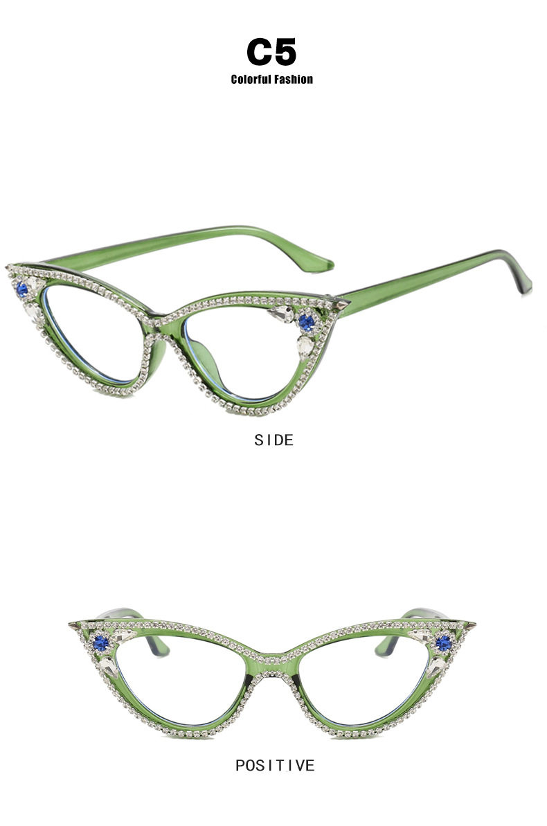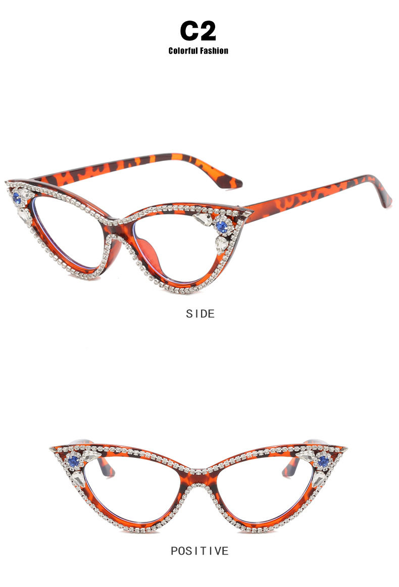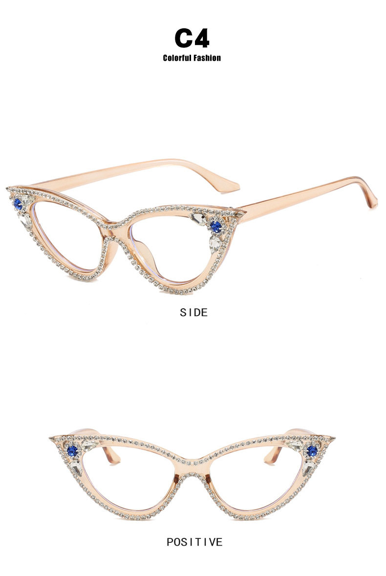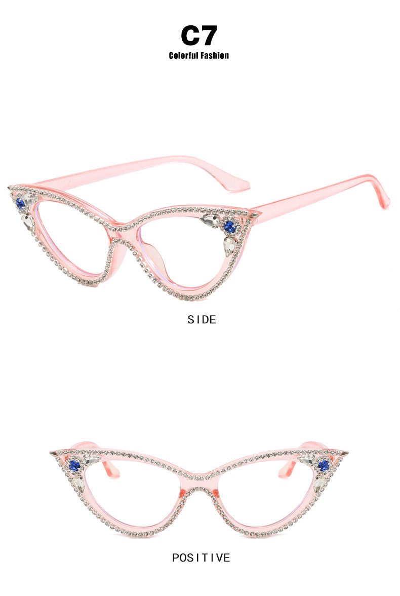 Kedun 2023 New Cat-Eye Rhinestone Flat Glasses for Prom and Party Decoration, European and American Trendy and Unique Eyewear