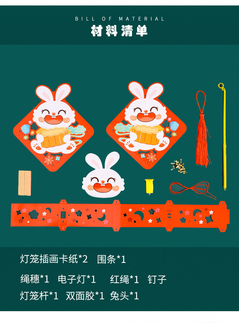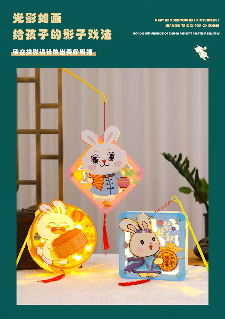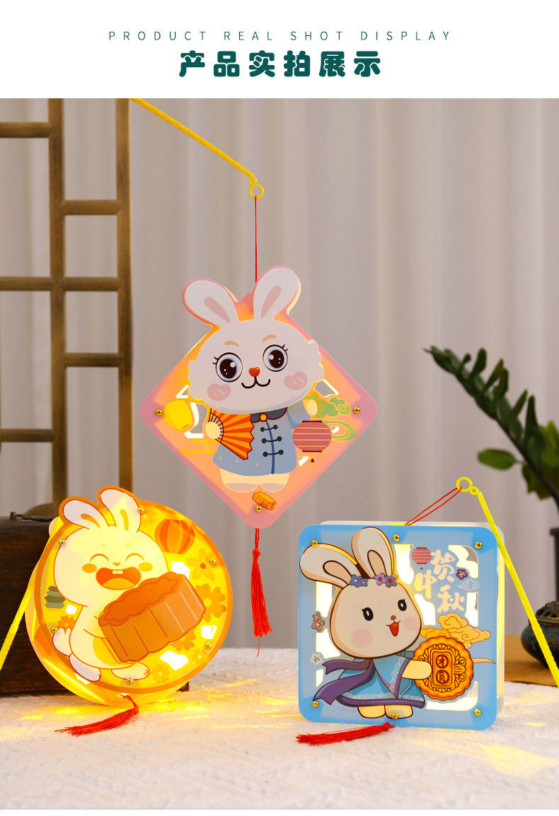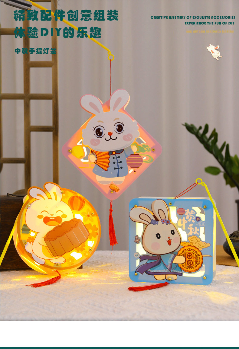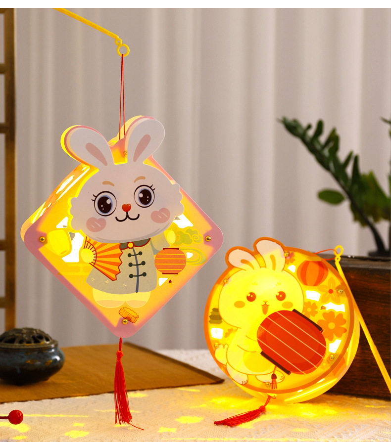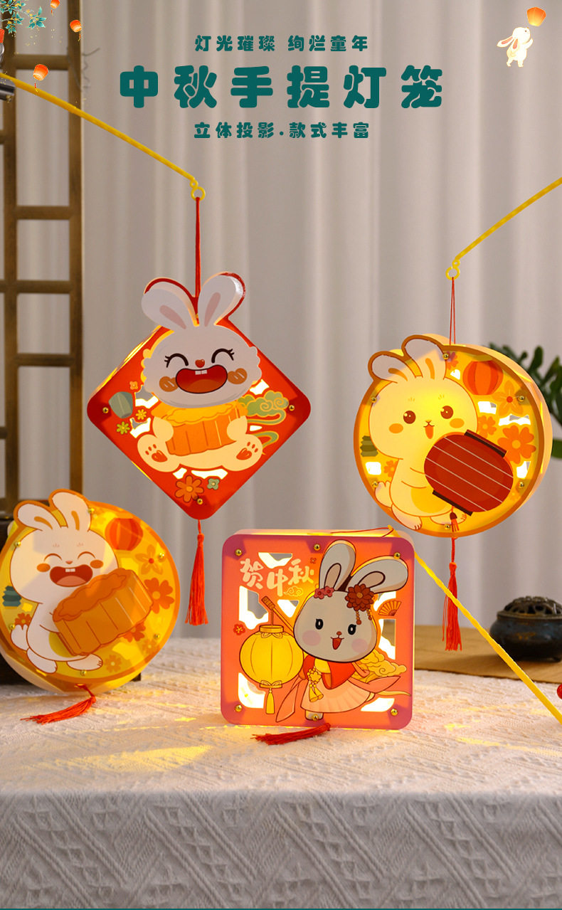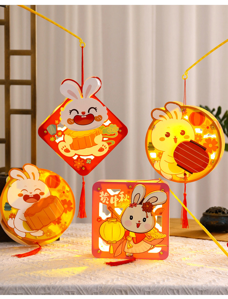 Mid-Autumn Festival Lantern rabbit walking lantern portable Luminous lantern DIY material package handmade lantern mid-autumn festival lantern