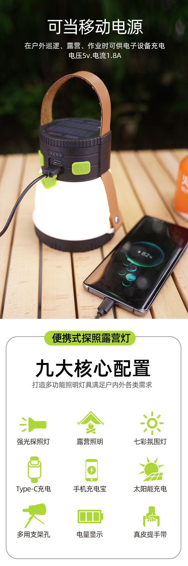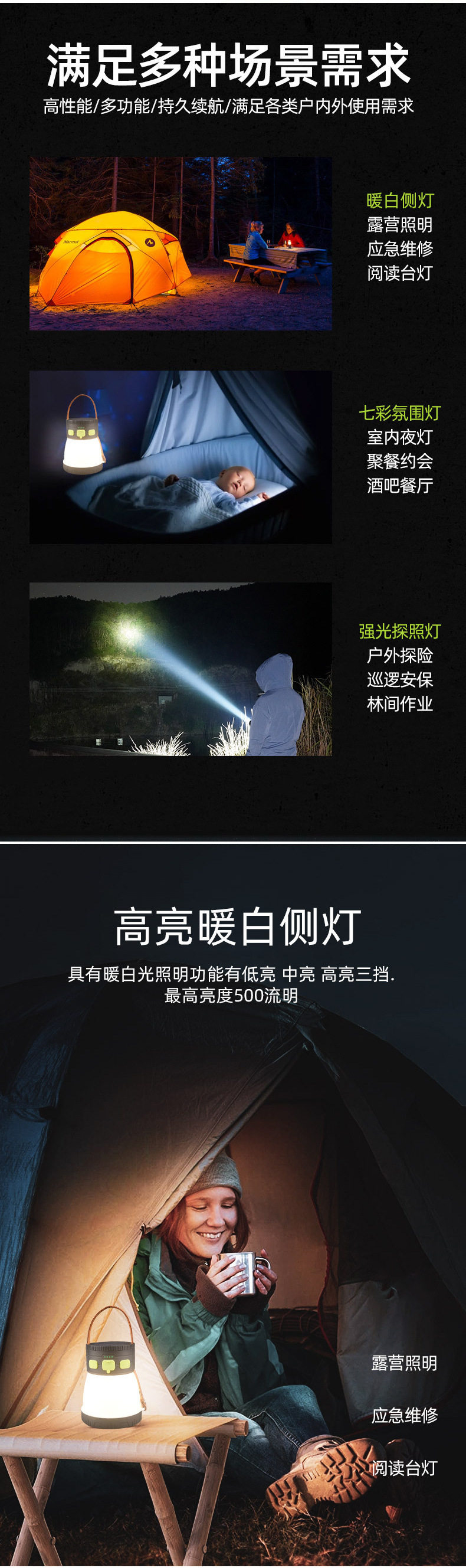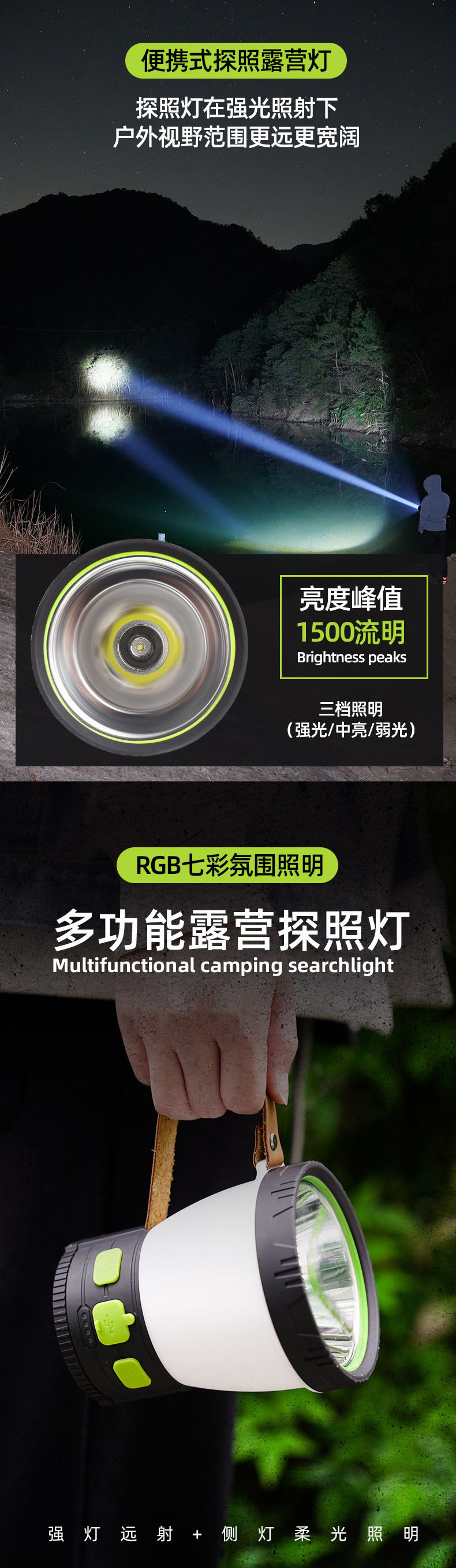 New T40 portable lamp outdoor multi-function Searchlight multi-light source charging tent lamp RGB colorful lantern