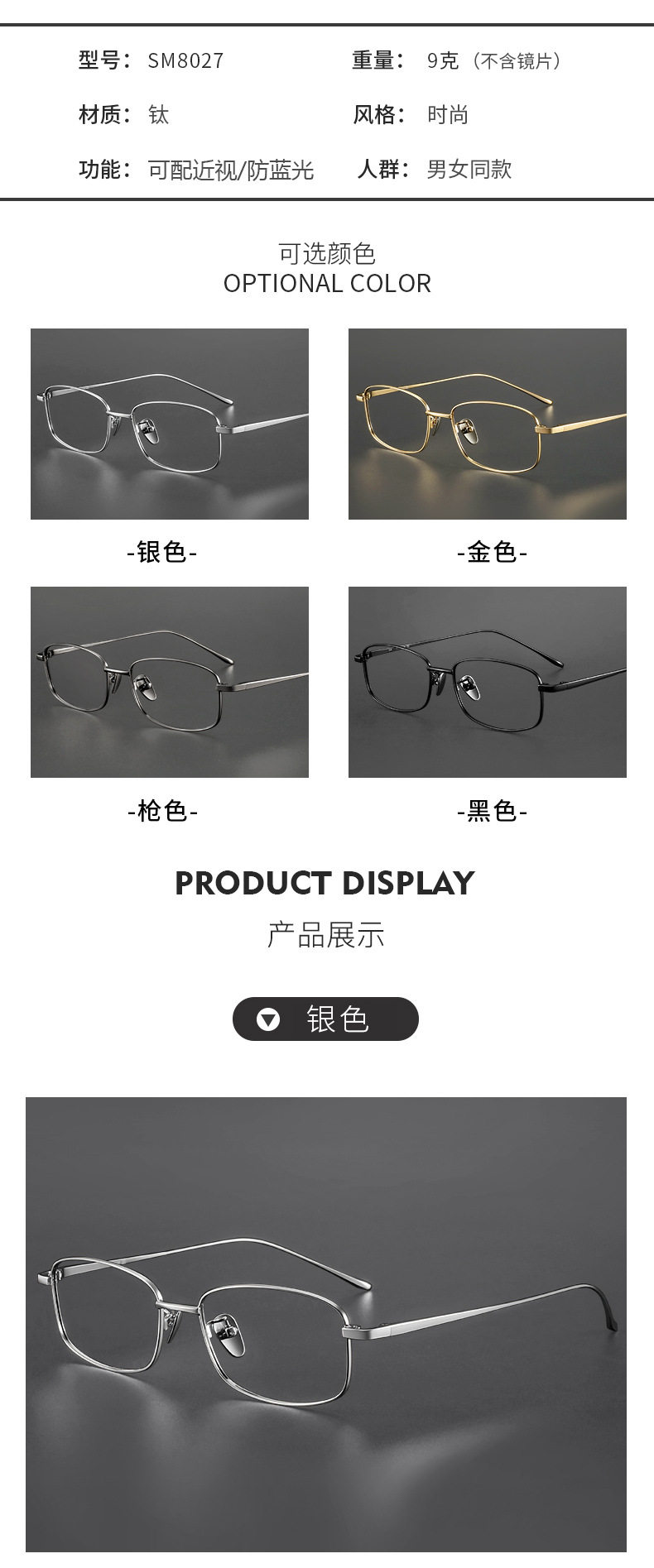 | Frame Color | Silver,Gold,Gun color,Black |