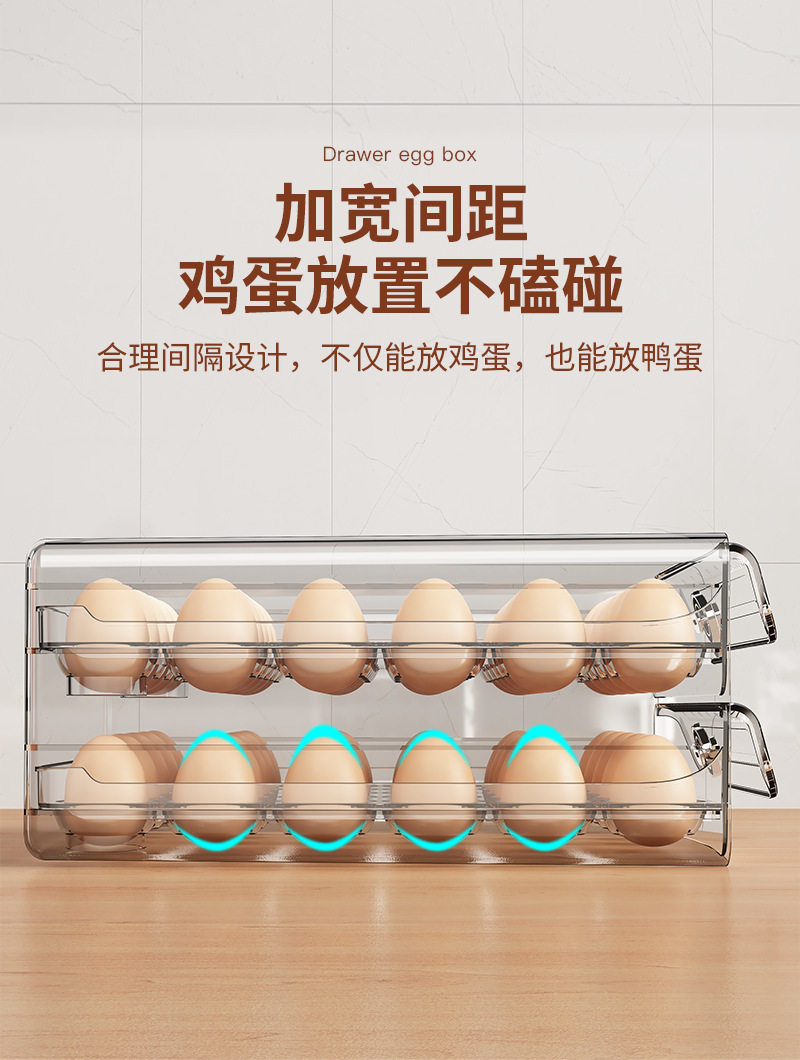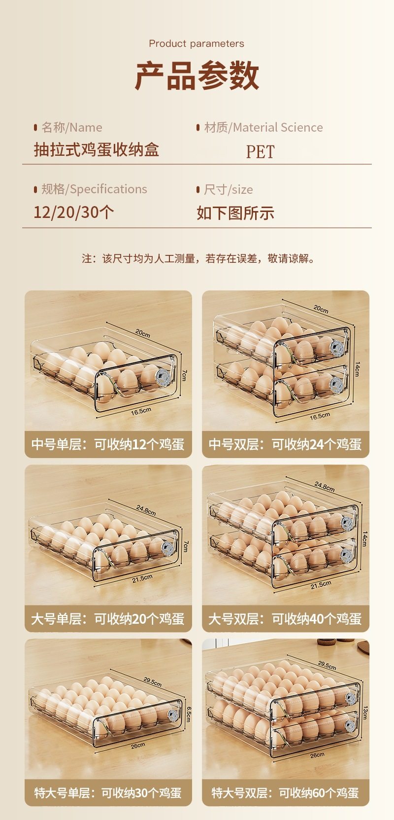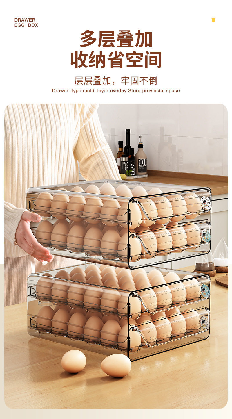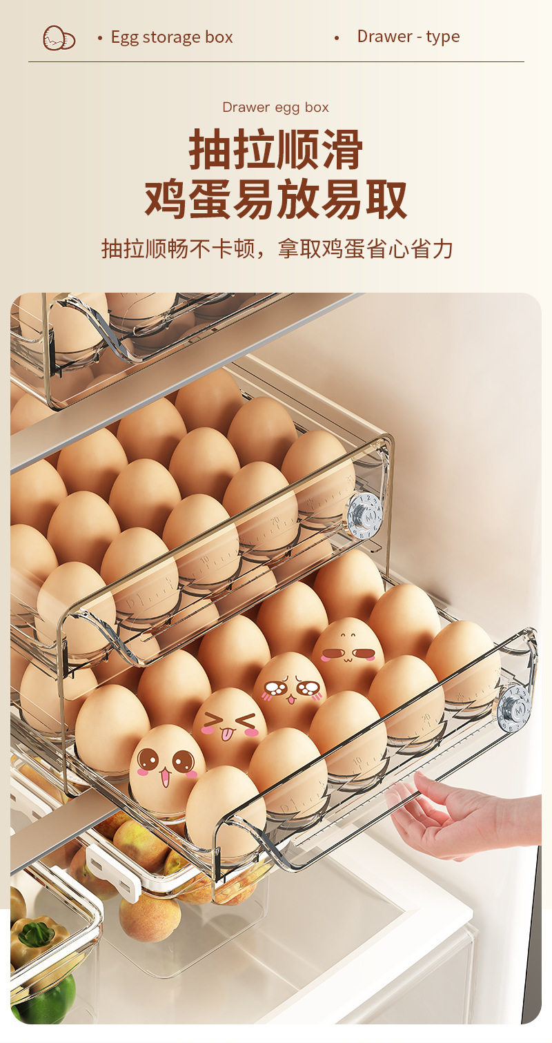 Egg storage box kitchen refrigerator fresh egg box plastic transparent multi-size double drawer egg box