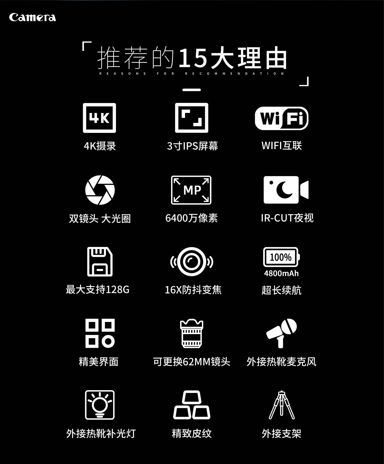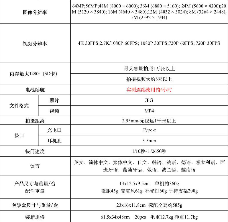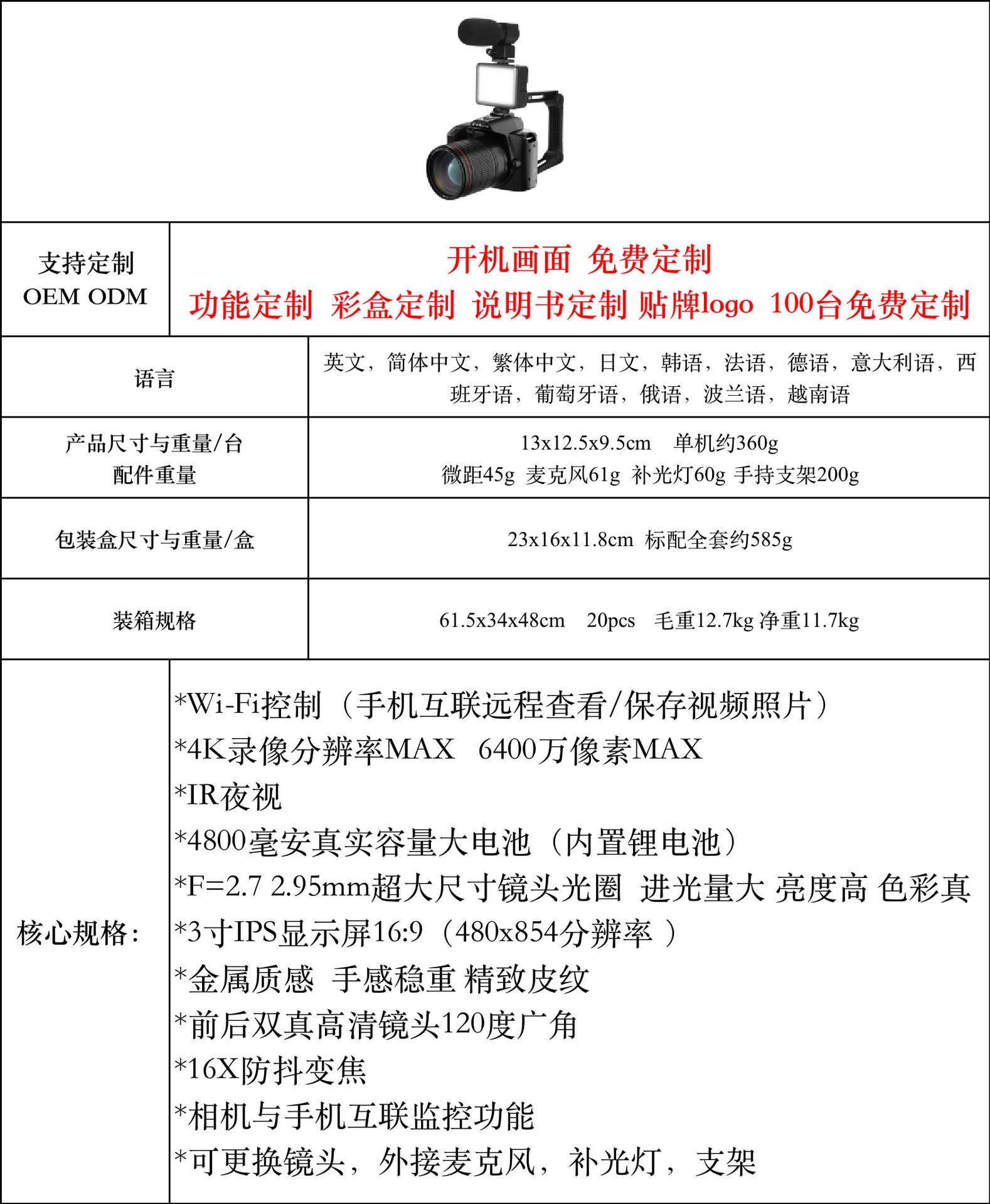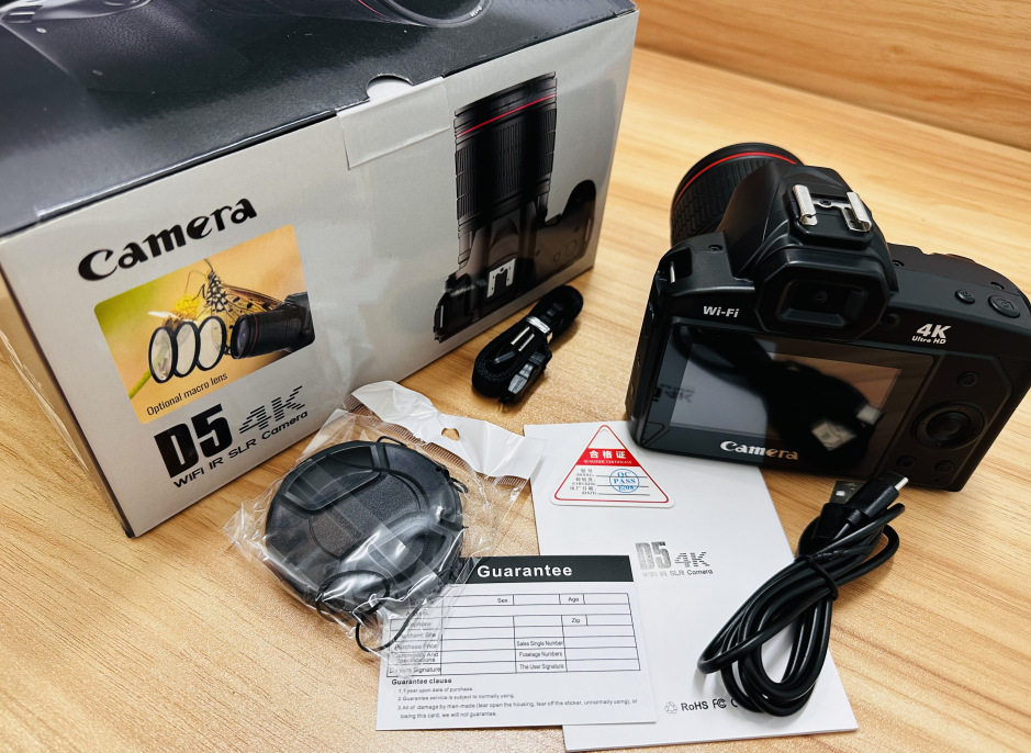 | Body color | D5 black does not include memory card,D5 black + fill light,D5 black + macro mirror,D5 black + microphone,D5 black + handheld stand,D5 black + light + lens + microphone + bracket,D5 white does not include memory card,D5 white + fill light,D5 white + macro mirror,D5 white + microphone,D5 white + handheld stand,D5 white + light + lens + microphone + bracket,8g memory card,16g memory card,32g memory card,64g memory card,128g memory card |