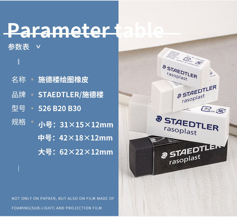 German Staedtler Eraser 526 B20 | 30 | 40 Black and White Student Eraser Painting Sketch Eraser Crumbs