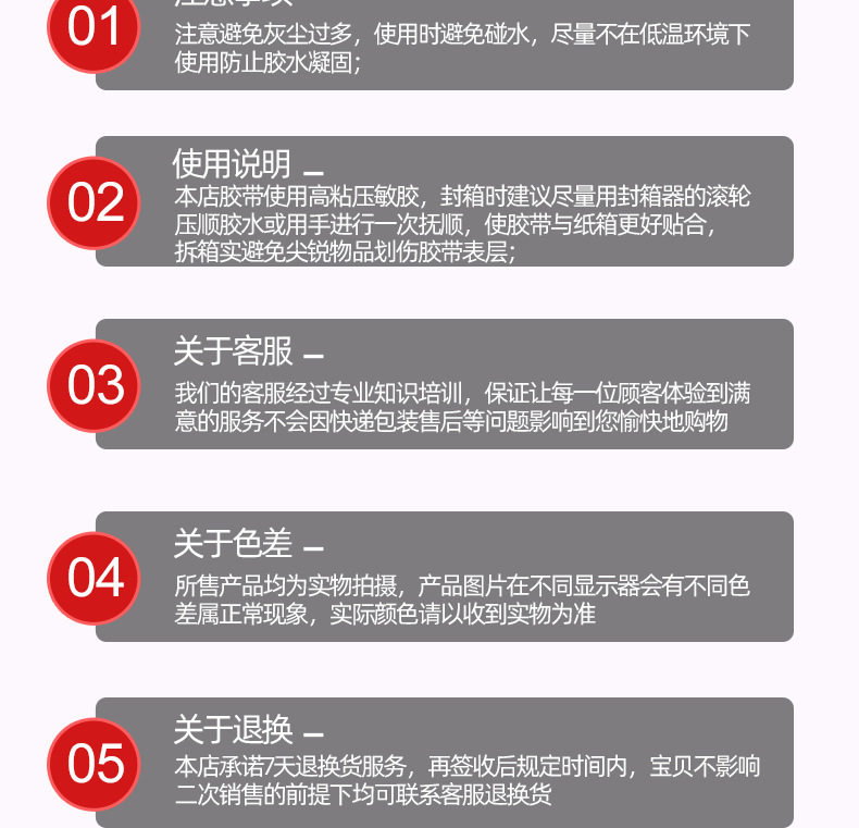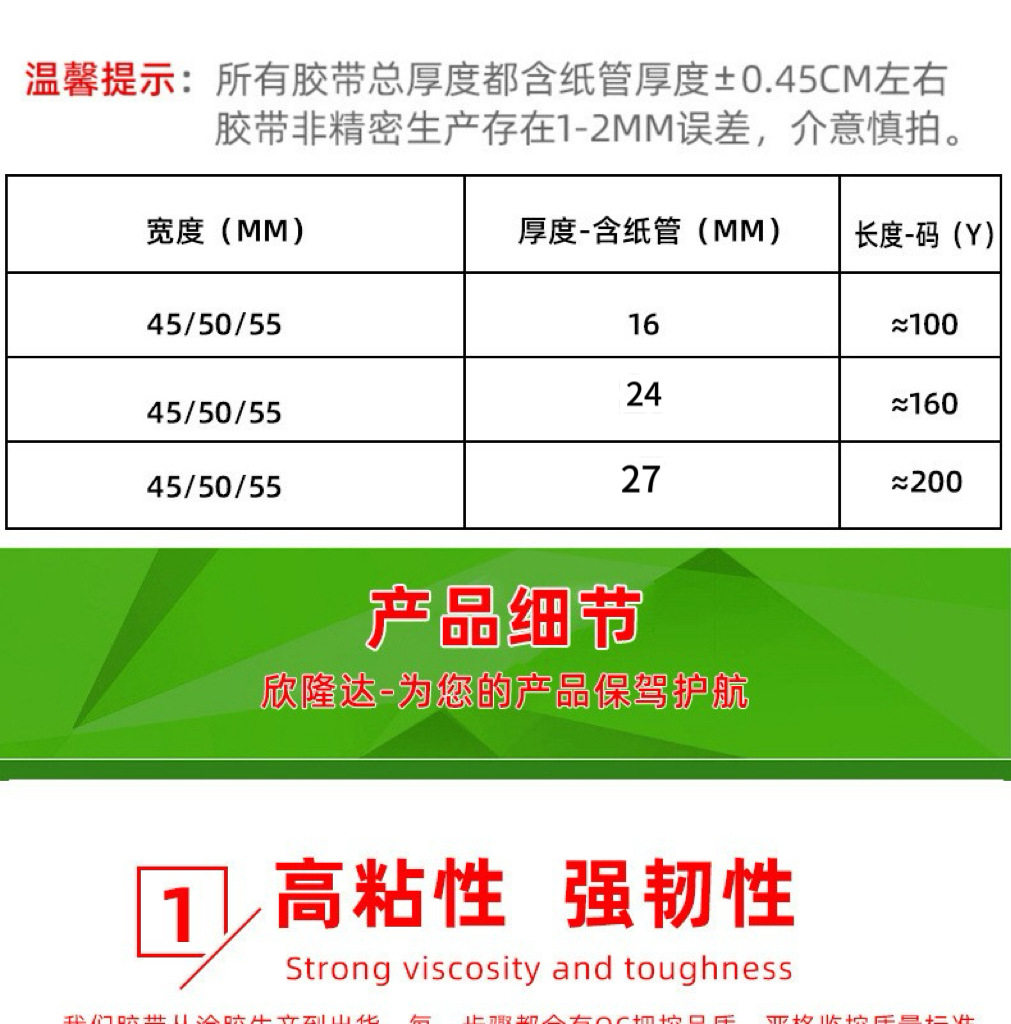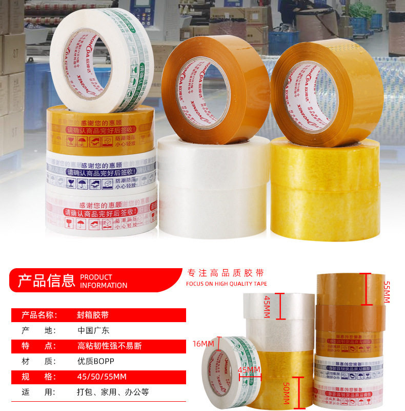 | Specifications and models | Transparent white; 4.5*60 [full box of 144 rolls] small box of 60 rolls,Transparent white; 4.5*100 [120 rolls in a box] 54 rolls in a small box,Transparent white; 4.5*160 [90 rolls in a box] 48 rolls in a small box,Transparent white; 4.5*200 [full box of 72 rolls] small box of 48 rolls,Transparent white; 4.5*1000 machine tape [12 rolls per box],Transparent white; 5*100 [full box of 120 rolls] small box of 54 rolls,Transparent white; 5*160 [full box of 90 rolls] small box of 48 rolls,Transparent white; 5*1000 machine tape [12 rolls per box],Transparent white; 5.5*100 [full box of 100 rolls] small box of 45 rolls,Transparent white; 5.5*160 [full box of 75 rolls] small box of 40 rolls,Transparent white; 5.5*1000 machine tape [12 rolls per box],Transparent yellow; 4.5*60 [full box of 144 rolls] small box of 60 rolls,Transparent yellow; 4.5*100 [full box of 120 rolls] small box of 54 rolls,Transparent yellow; 4.5*160 [full box of 90 rolls] small box of 48 rolls,Transparent yellow; 4.5*200 [full box of 72 rolls] small box of 48 rolls,Transparent yellow; 4.5*1000 machine tape [12 rolls per box],Transparent yellow; 5*100 [full box of 120 rolls] small box of 54 rolls,Transparent yellow; 5*160 [full box of 90 rolls] small box of 48 rolls,Transparent yellow; 5*1000 machine tape [12 rolls per box],Transparent yellow; 5.5*100 [full box of 100 rolls] small box of 45 rolls,Transparent yellow; 5.5*160 [full box of 75 rolls] small box of 40 rolls,Transparent yellow; 5.5*1000 machine tape [12 rolls per box],Beige; 4.5*60 [full box of 144 rolls] small box of 60 rolls,Beige; 4.5*100 [full box of 120 rolls] small box of 54 rolls,Beige; 4.5*160 [full box of 90 rolls] small box of 48 rolls,Beige; 4.5*200 [full box of 72 rolls] small box of 48 rolls,Beige; 5*100 [full box of 120 rolls] small box of 54 rolls,Beige; 5*160 [full box of 90 rolls] small box of 48 rolls,Beige; 5.5*100 [full box of 100 rolls] small box of 45 rolls,Beige; 5.5*160 [full box of 75 rolls] small box of 40 rolls,Red letters on white background; 4.5*100 [120 rolls in a box] 54 rolls in a small box,Red letters on white background; 4.5*160 [90 rolls in a box] 48 rolls in a small box,Red letters on white background; 4.5*200 [full box of 72 rolls] small box of 48 rolls,Red letters on white background; 4.5*1000 machine tape [12 rolls in a box],White background with blue characters; 4.5*100 [full box of 120 rolls] small box of 54 rolls,White background with blue characters; 4.5*160 [90 rolls in a box] 48 rolls in a small box,White background with blue characters; 4.5*200 [full box of 72 rolls] small box of 48 rolls,White background with blue characters; 4.5*1000 machine tape [12 rolls in a box],Green characters on white background; 4.5*100 [120 rolls in a box] 54 rolls in a small box,Green characters on white background; 4.5*160 [90 rolls in a box] 48 rolls in a small box,Green characters on white background; 4.5*200 [full box of 72 rolls] small box of 48 rolls,Green characters on white background; 4.5*1000 machine tape [12 rolls per box],Black text on white background; 4.5*100 [120 rolls in a box] 54 rolls in a small box,Black text on white background; 4.5*160 [90 rolls in a box] 48 rolls in a small box,Black text on white background; 4.5*200 [full box of 72 volumes] small box of 48 volumes,Orange characters on white background; 4.5*100 [120 rolls in a box] 54 rolls in a small box,Orange characters on white background; 4.5*160 [90 rolls in a box] 48 rolls in a small box,Orange characters on white background; 4.5*200 [full box of 72 rolls] small box of 48 rolls,Beige and red letters; 4.5*100 [full box of 120 rolls] small box of 54 rolls,Beige and red letters; 4.5*160 [full box of 90 rolls] small box of 48 rolls,Beige and red letters; 4.5*200 [full box of 72 rolls] small box of 48 rolls |