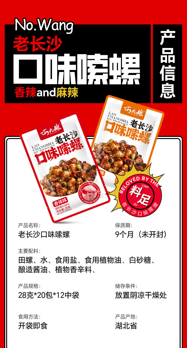 Qiao Auntie Old Changsha Flavor Snails 28g Snail Mud Snail Fried Snail Spicy Snail Three Wharf Snail Wholesale
