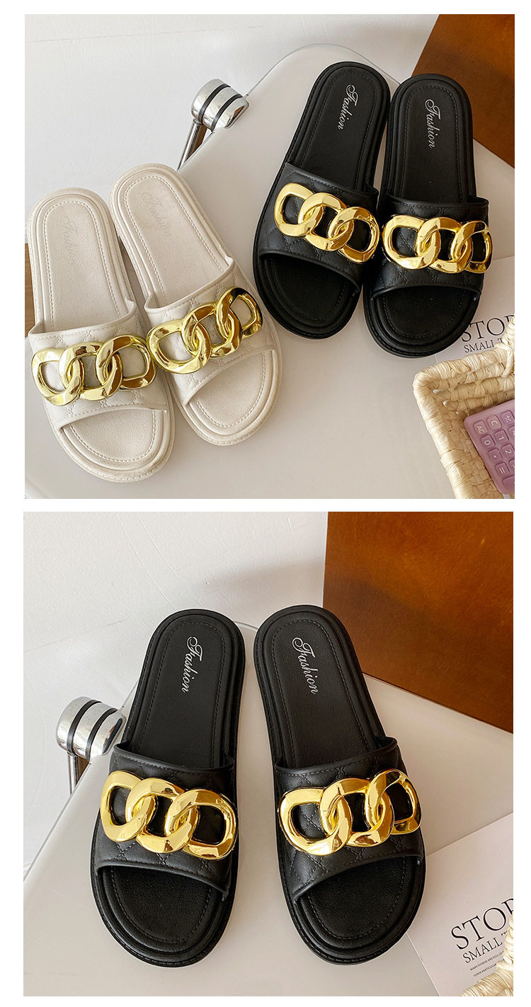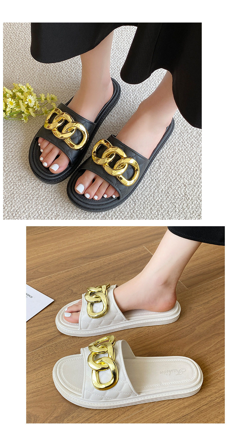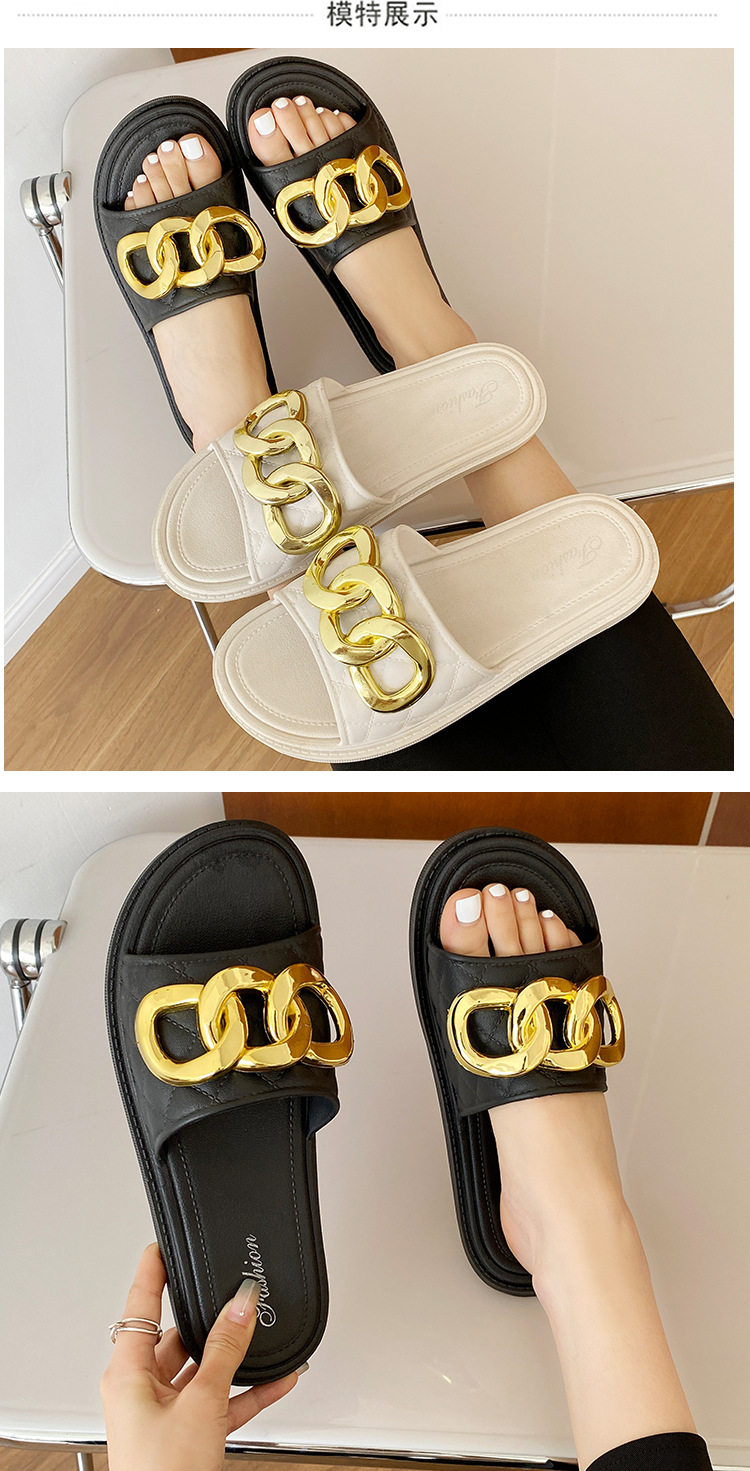 Internet Celebrity Popular Thick-Soled Slippers for Women's Summer Outer Wear, Fashionable and Trbottomyy Casual Flats-Soled Non-Slip Soft-Soled Slippers for Women