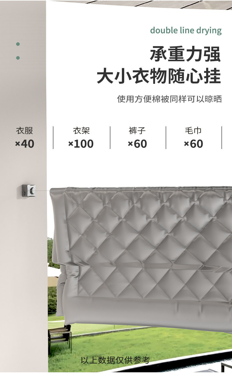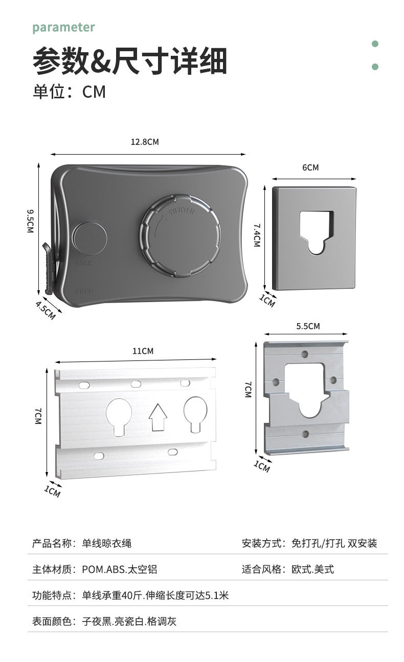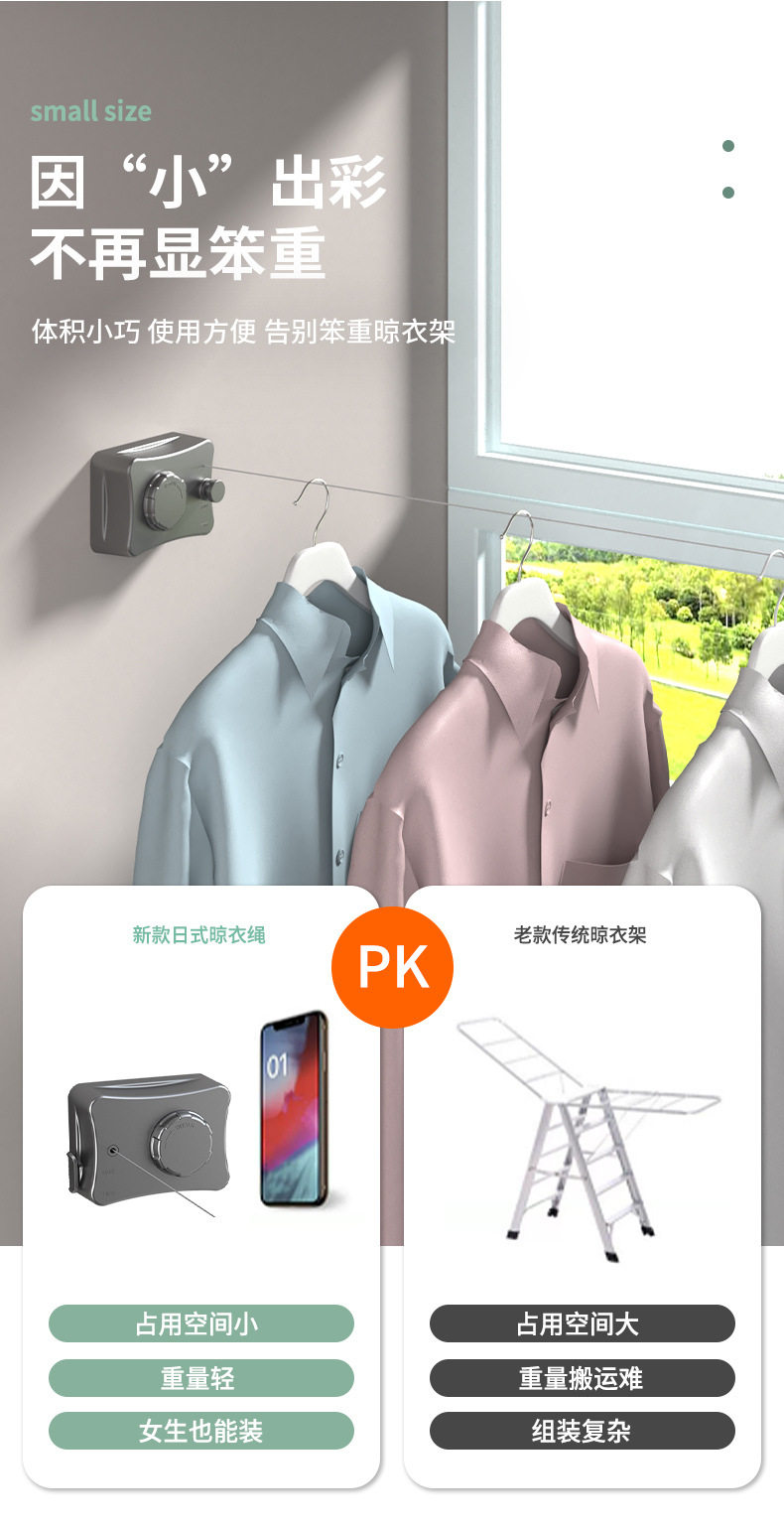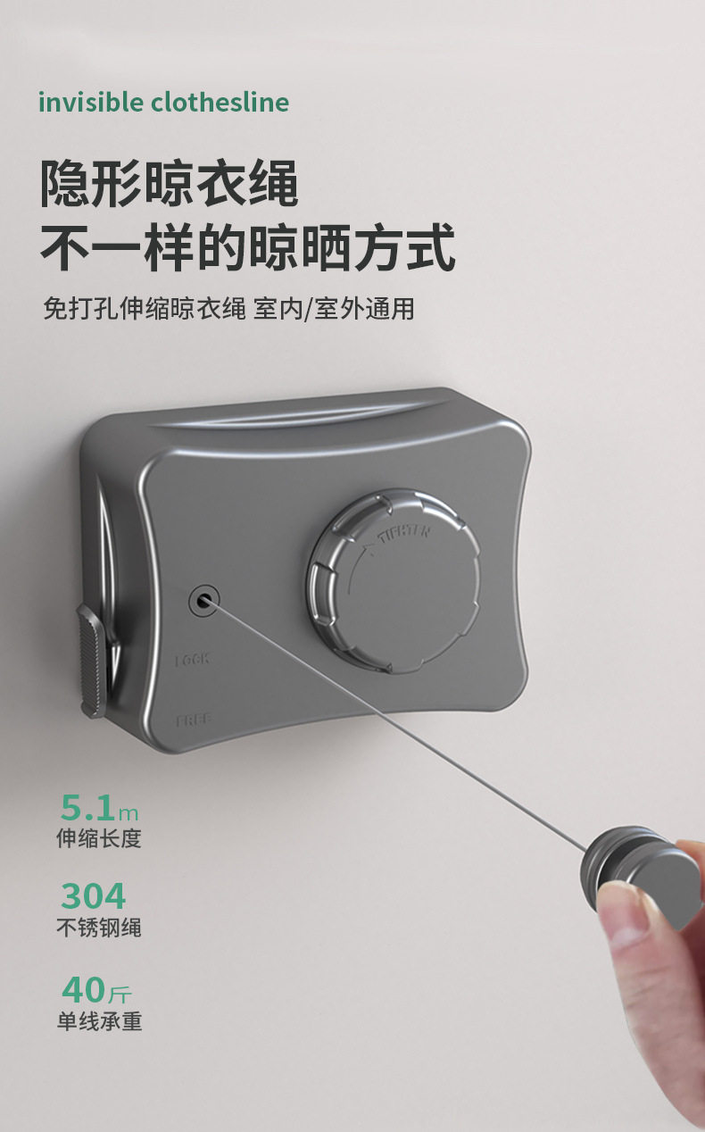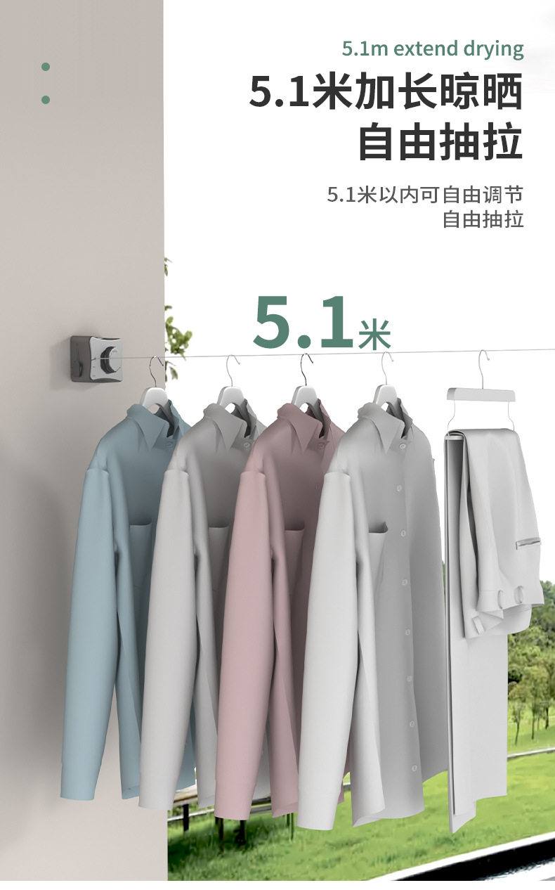 | Color | White - 5.1m camera clothesline (dual-purpose),Black - 5.1m camera clothesline (dual-purpose),Gun ash - 5.1m camera clothesline (dual-purpose),Gun ash-retractable 4.8m clothesline (dual-purpose),White - retractable 4.8m clothesline (dual-purpose),Black - retractable 4.8m clothesline (dual-purpose),Textured silver-double-ended clothesline (no need to punch holes) |