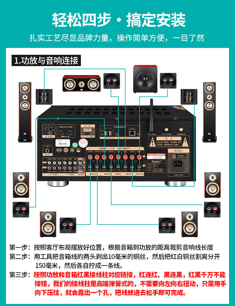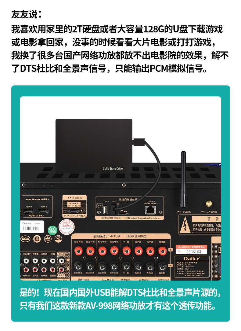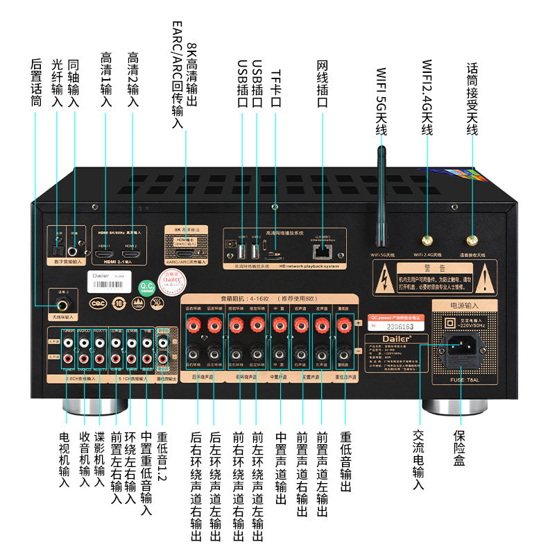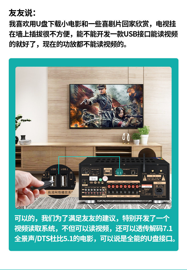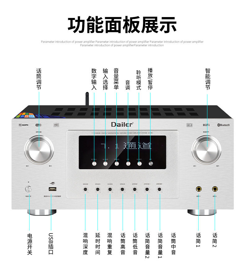 Dailer Home 7.1 Surround Sound 5.1 Dts 8K High-Definition Amplifier Hifi Network USB Player Amplifier
