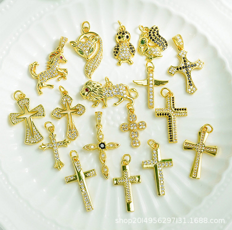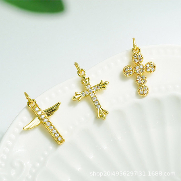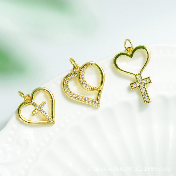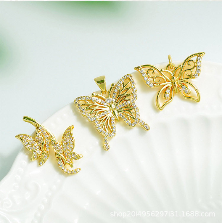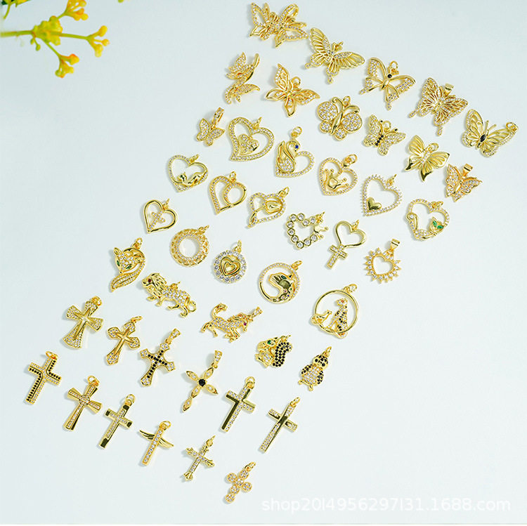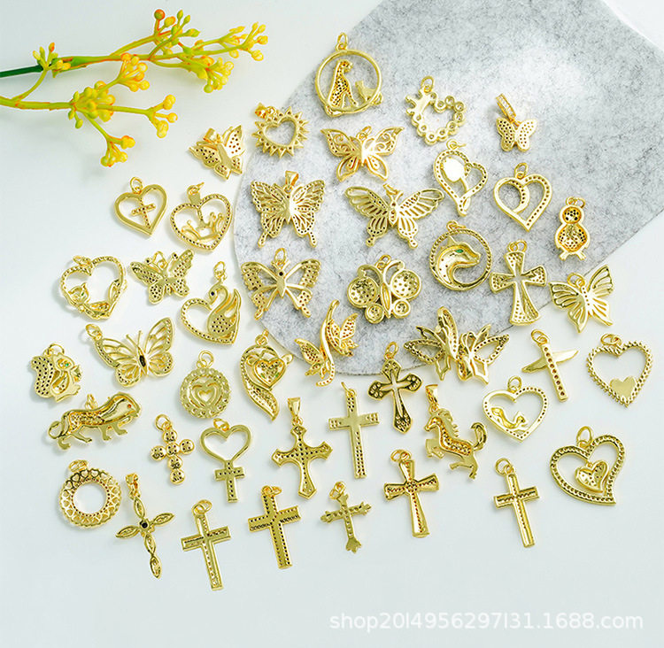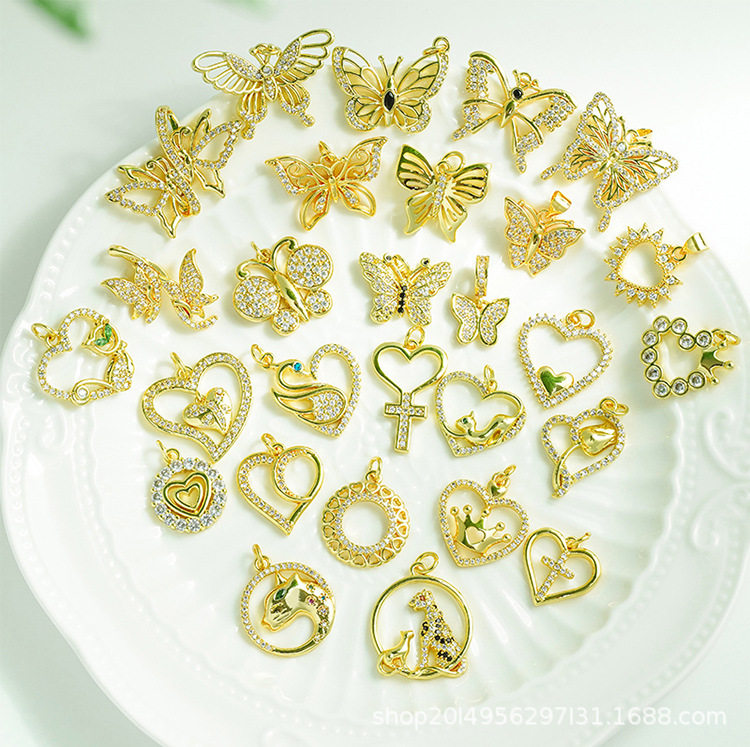 DIY Micro-Embedded Jewelry Accessories Butterfly Heart Cross Series Various Pendant Accessories 18K Real Gold Plating