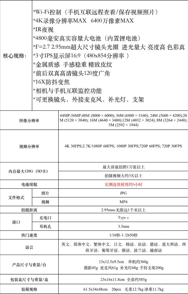New product 4K HD 64 million pixel WiFi digital camera night vision dual micro single photography dv cross border