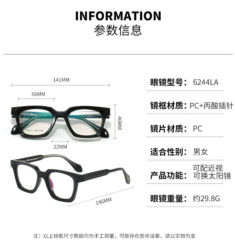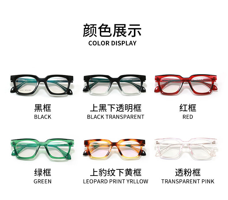 | Frame color | Black frame,Green frame,Red box,Transparent pink frame,Black top and bottom transparent frame,Leopard print on top and yellow frame on bottom |