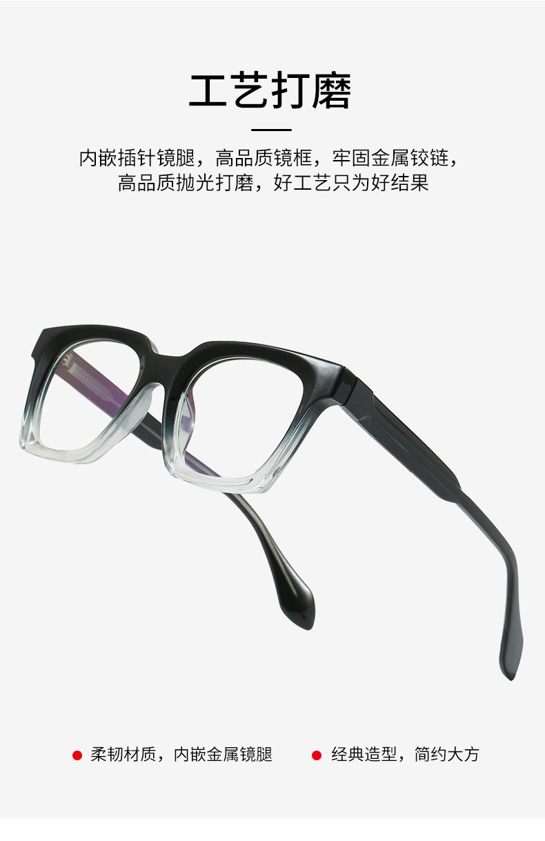 New Fashionable Anti-Blue Light Glasses Frame for Men, Artistic Square Frame, Non-Prescription Glasses, Personalized South American Frame, Factory Ready Stock