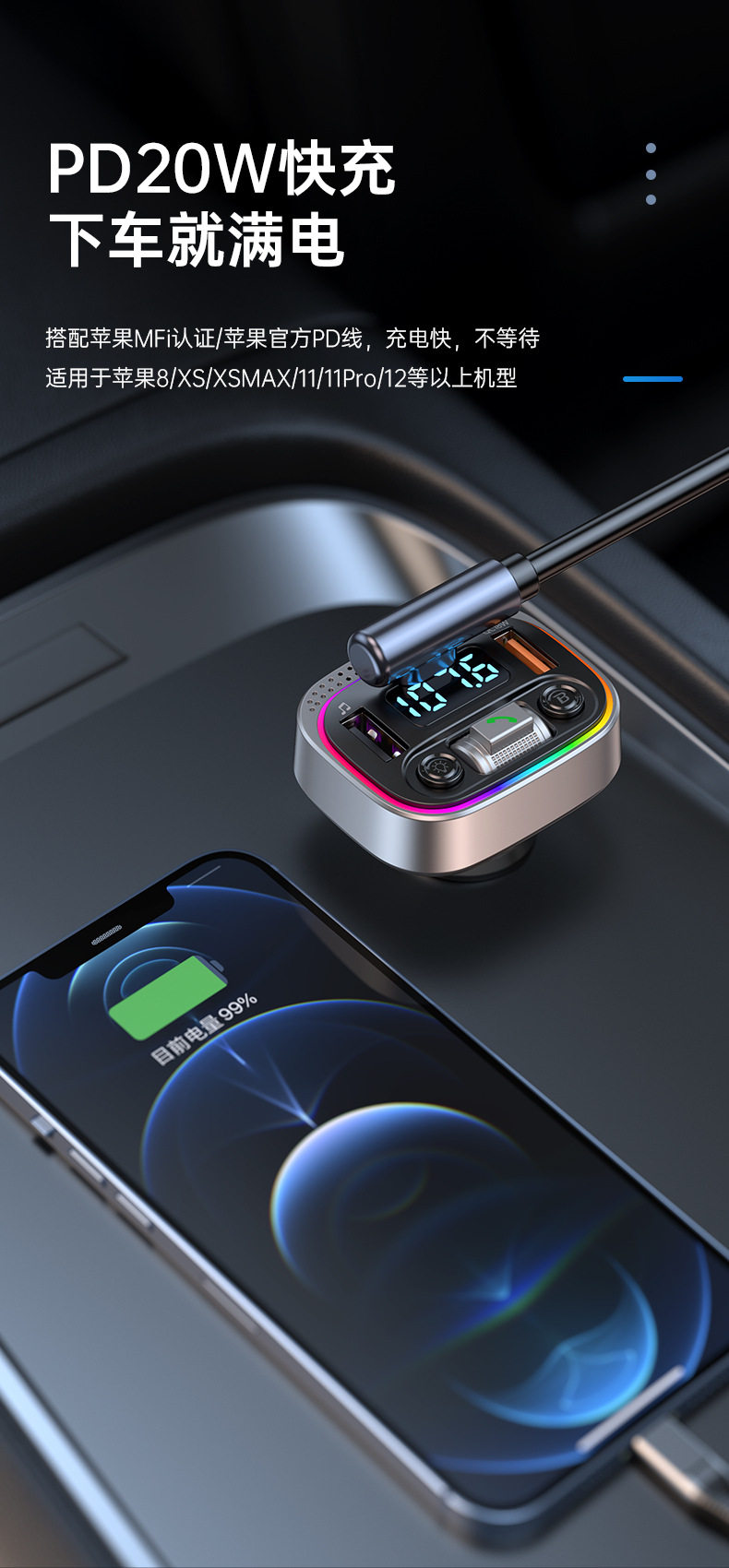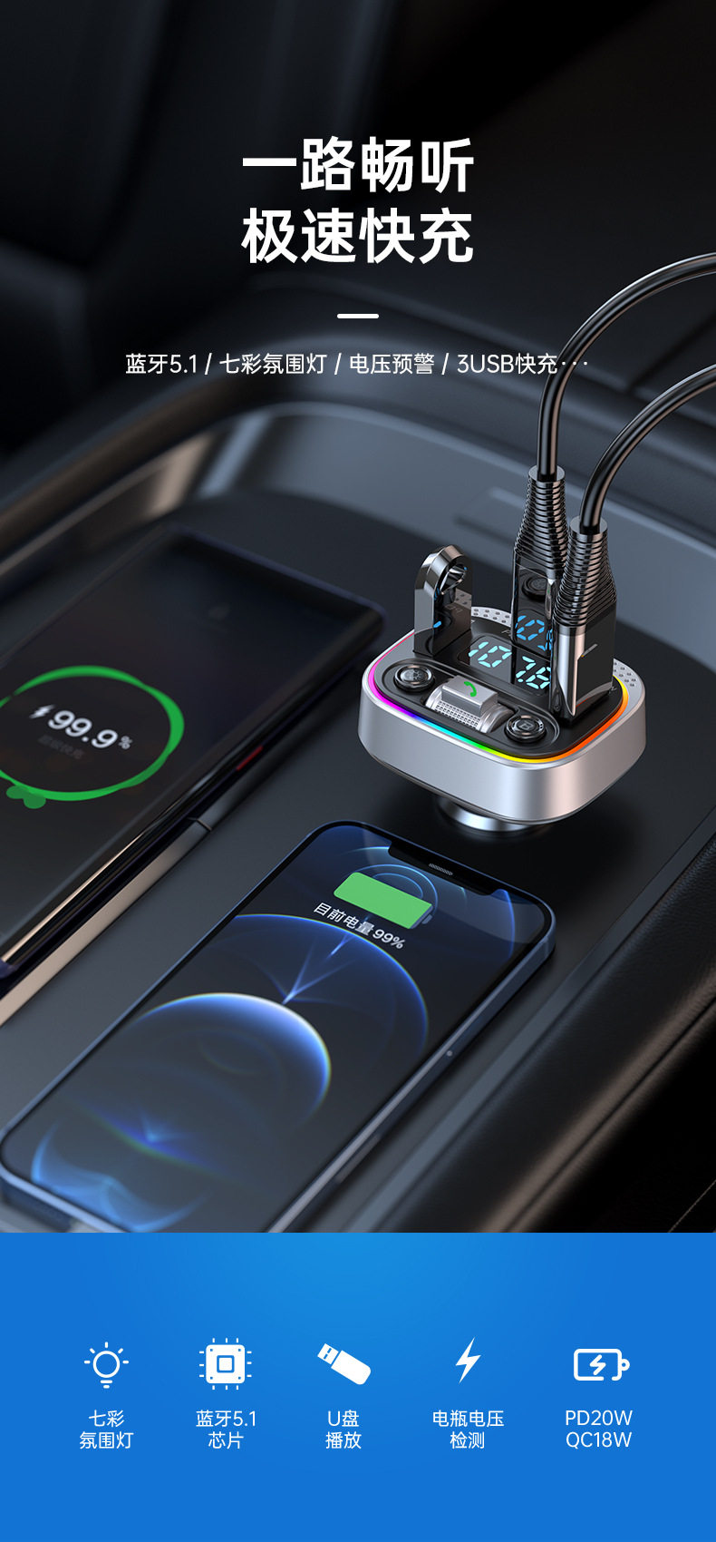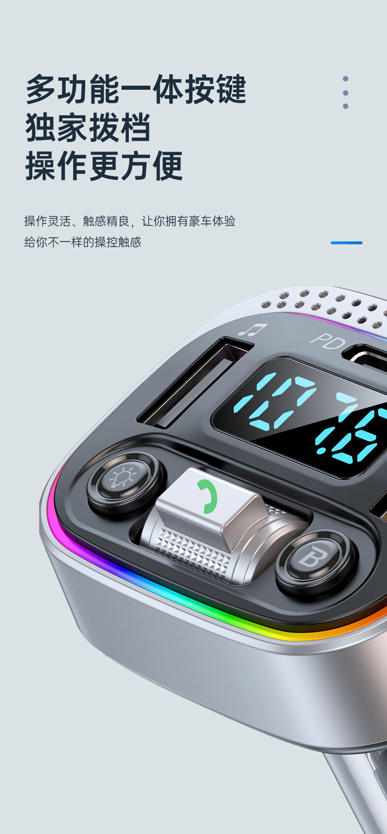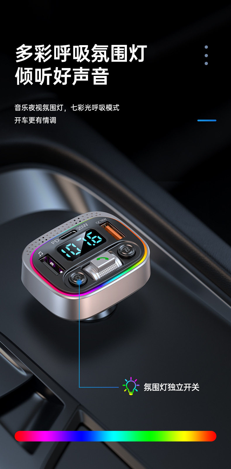 Pd30W+Qc3.0 Car Bluetooth Mp3 Player Light Car Bluetooth Hands-Free Fm Player Colorful Atmosphere Light