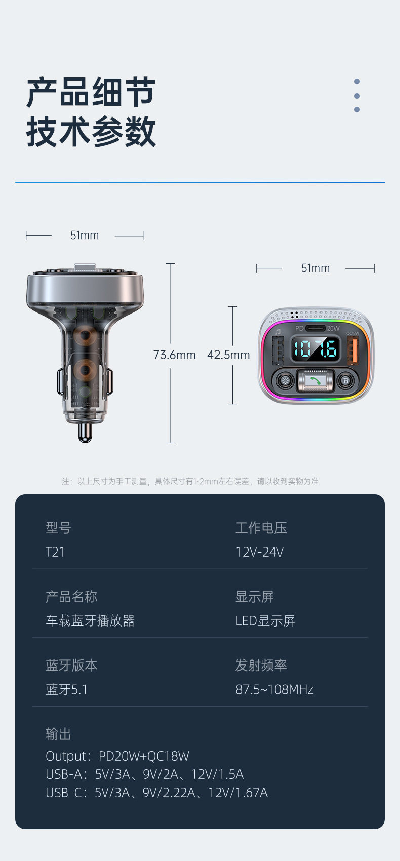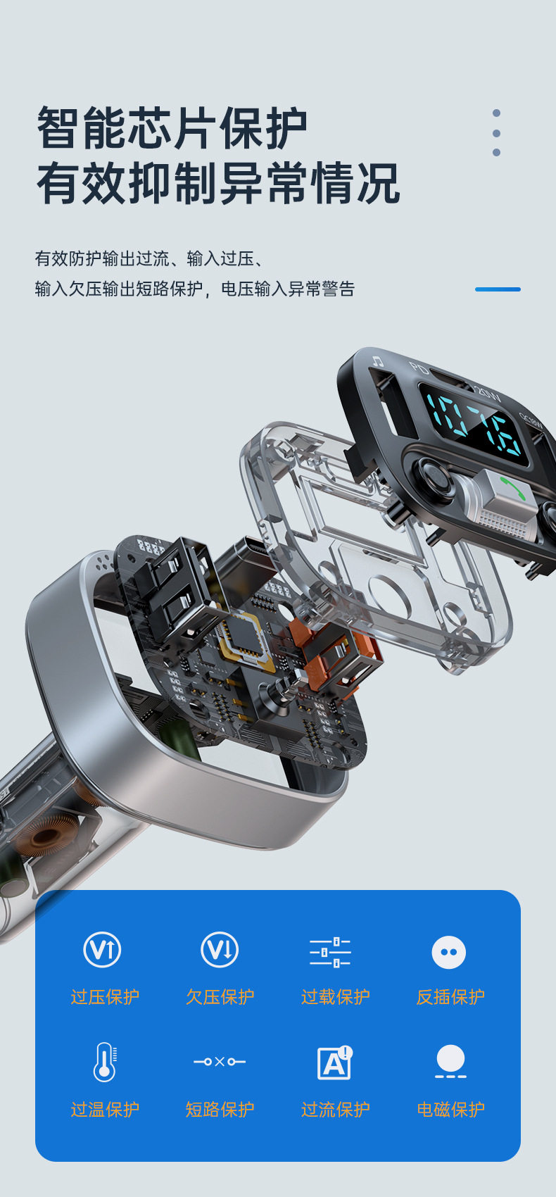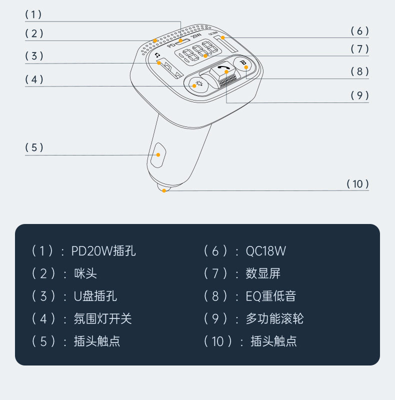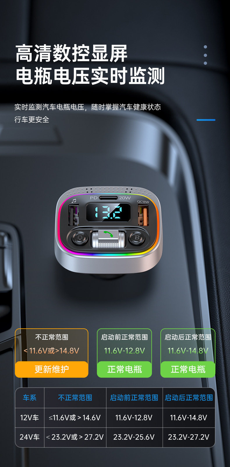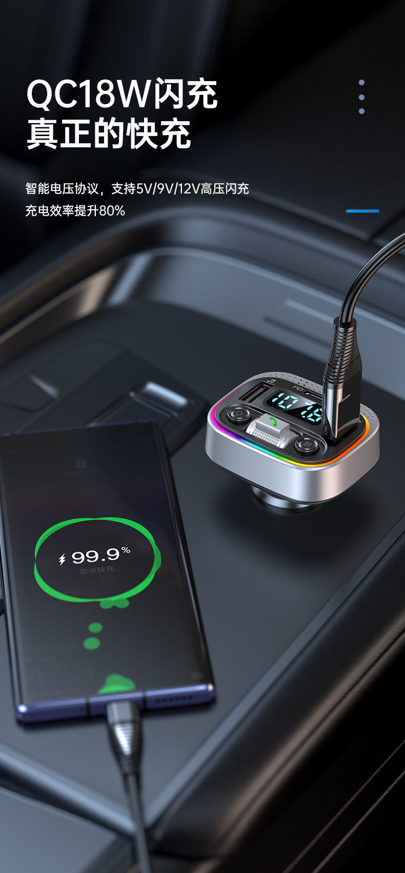 Pd30W+Qc3.0 Car Bluetooth Mp3 Player Light Car Bluetooth Hands-Free Fm Player Colorful Atmosphere Light