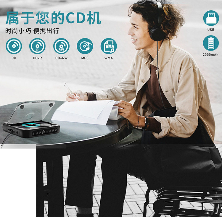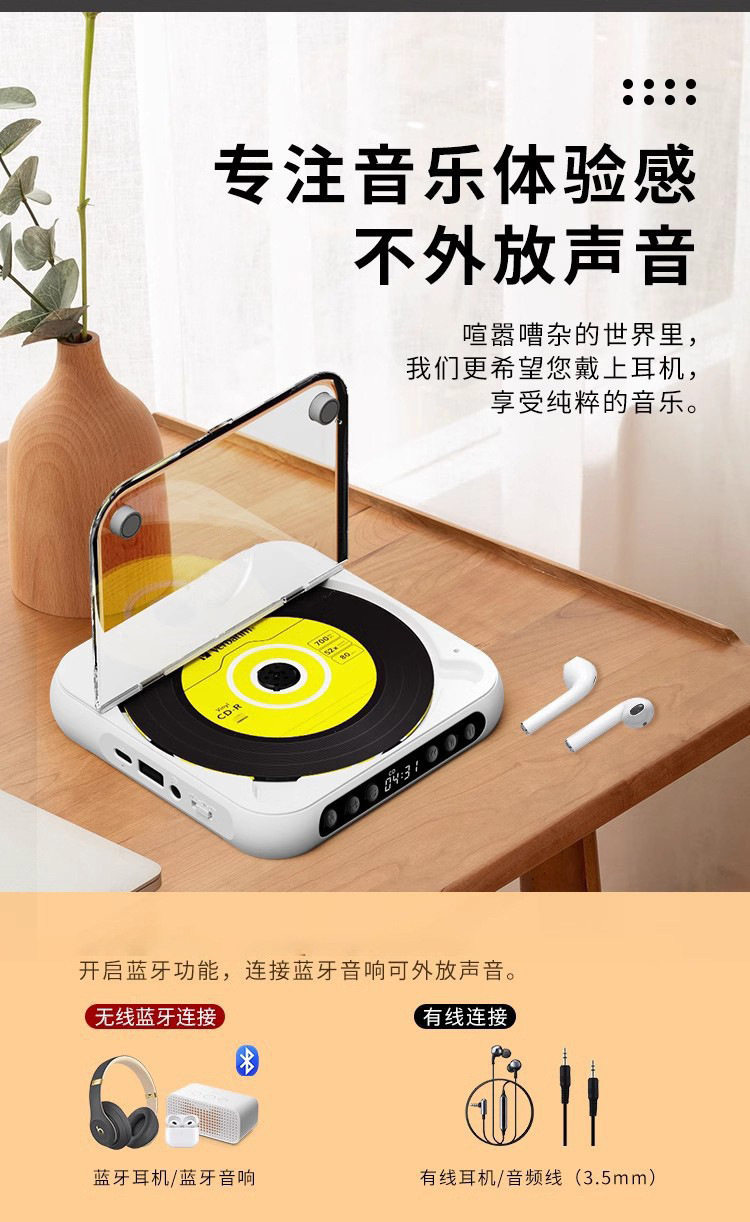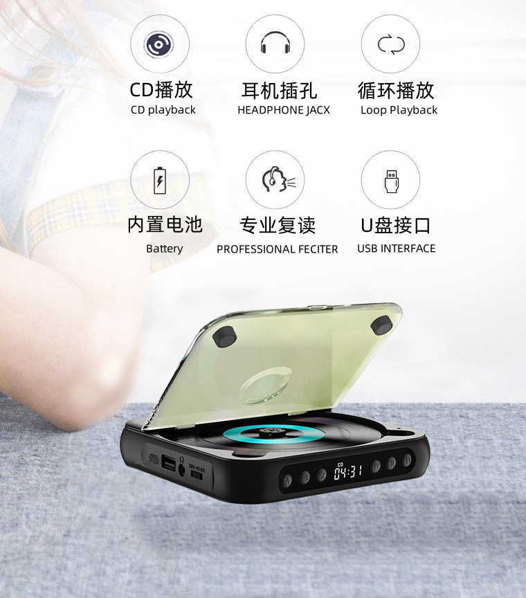 Portable and Thin Rechargeable Walkman Cd Player Small Student English Listening Repeater Bluetooth Cd Record Player
