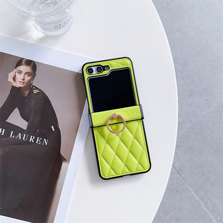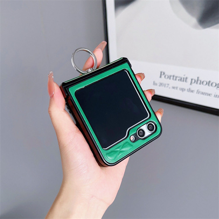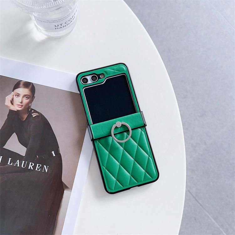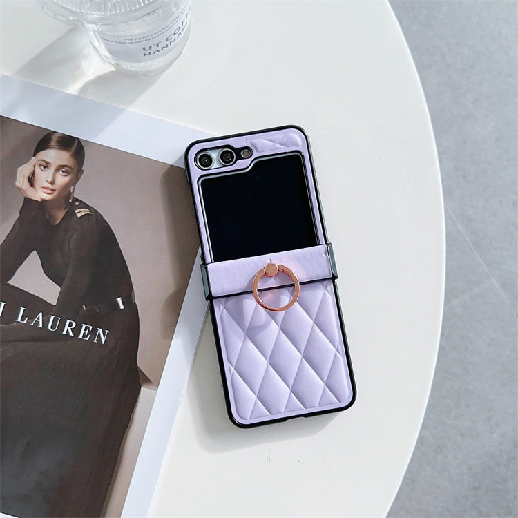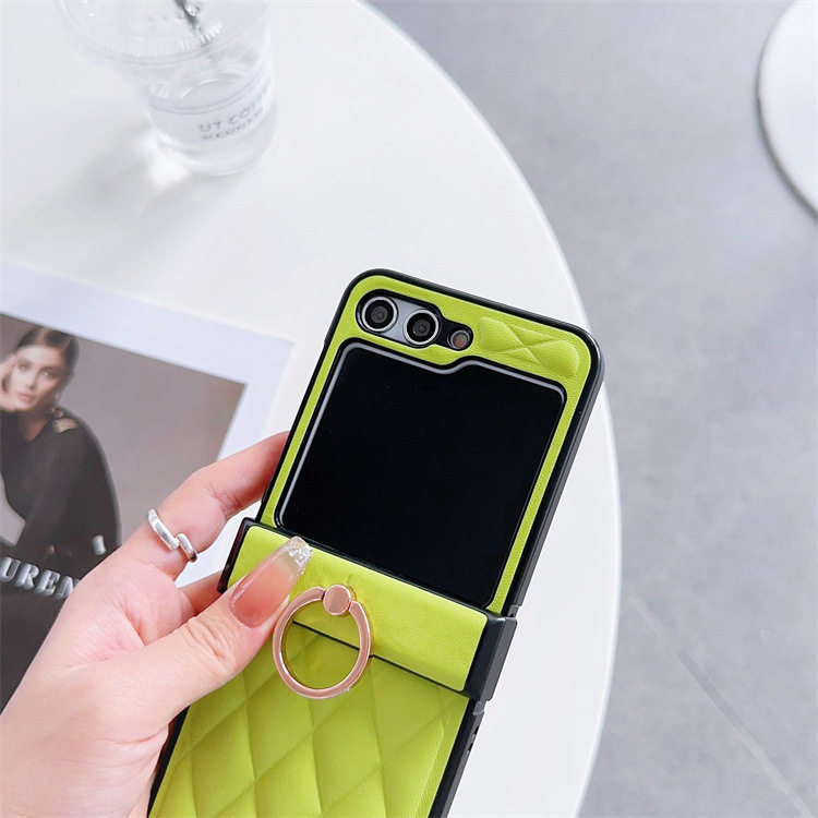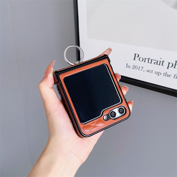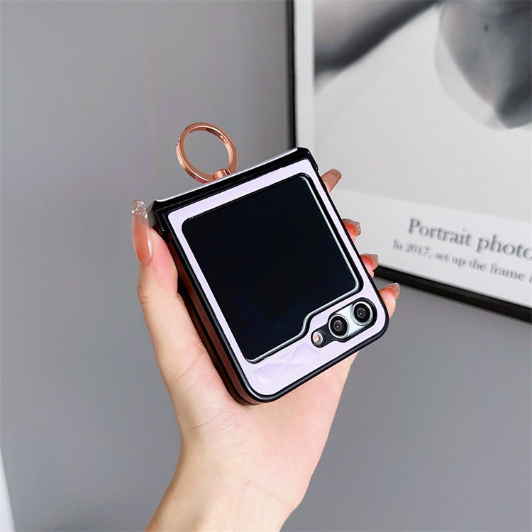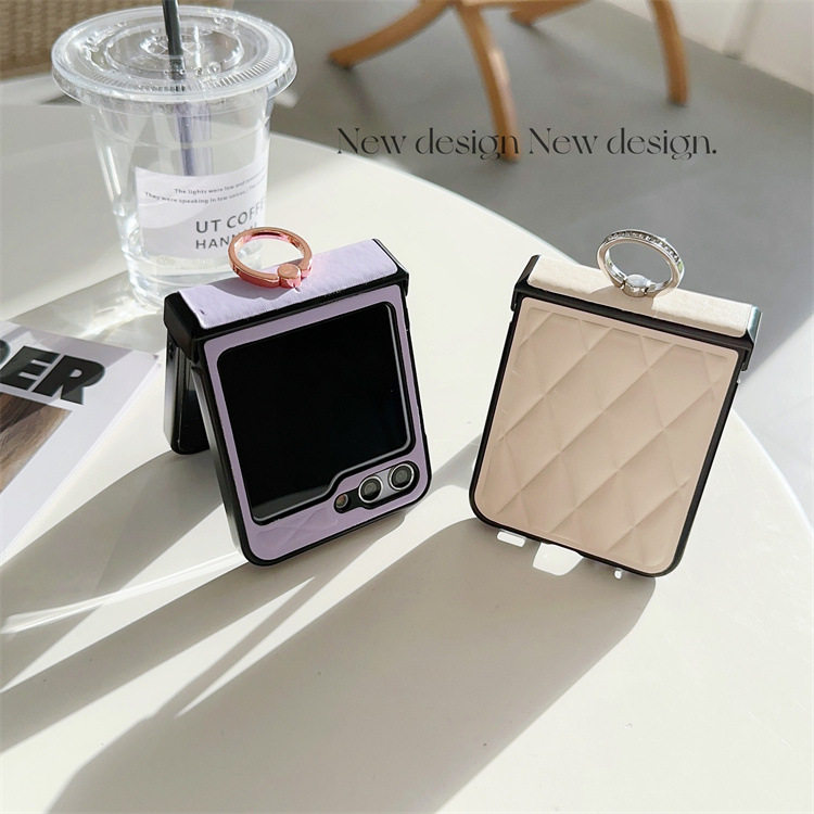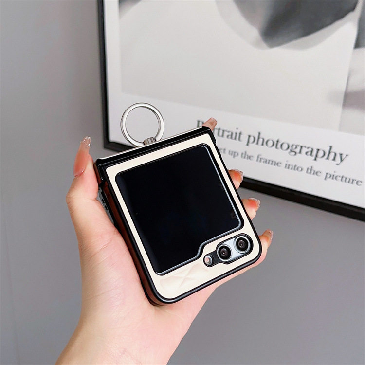 Suitable for Samsung Zflip6 Ring Buckle Mobile Phone Case Lingge Xiaoxiang Zflip 30% off Stacked Screen Leather Case Anti-Fall Protective Cover