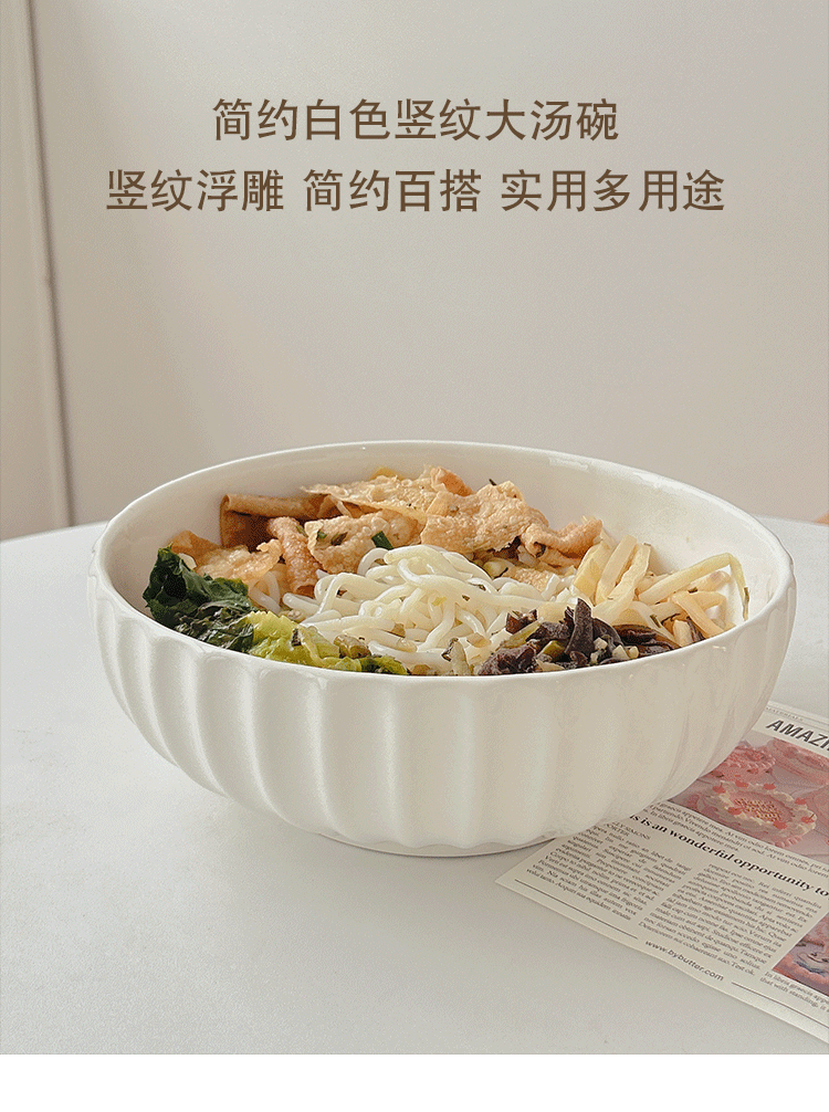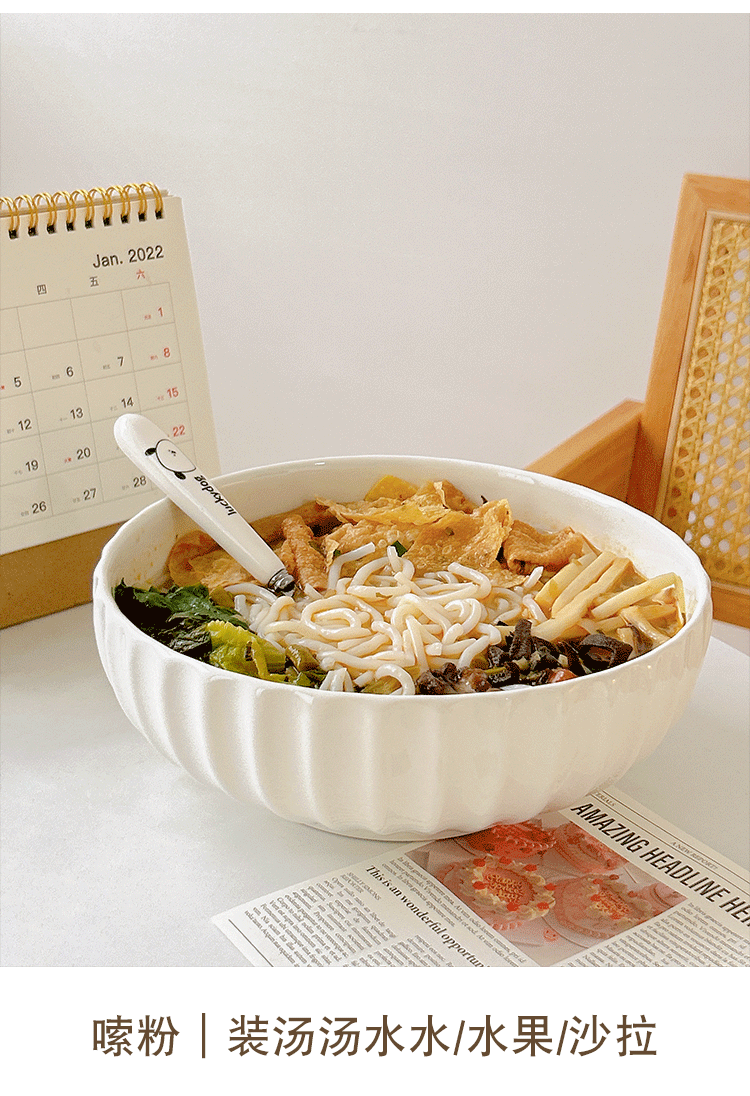 Snail Powder Bowl High Beauty Value Dormitory Student Instant Noodle Ceramic Household Large Soup Bowl Single Pickled Fish Bowl