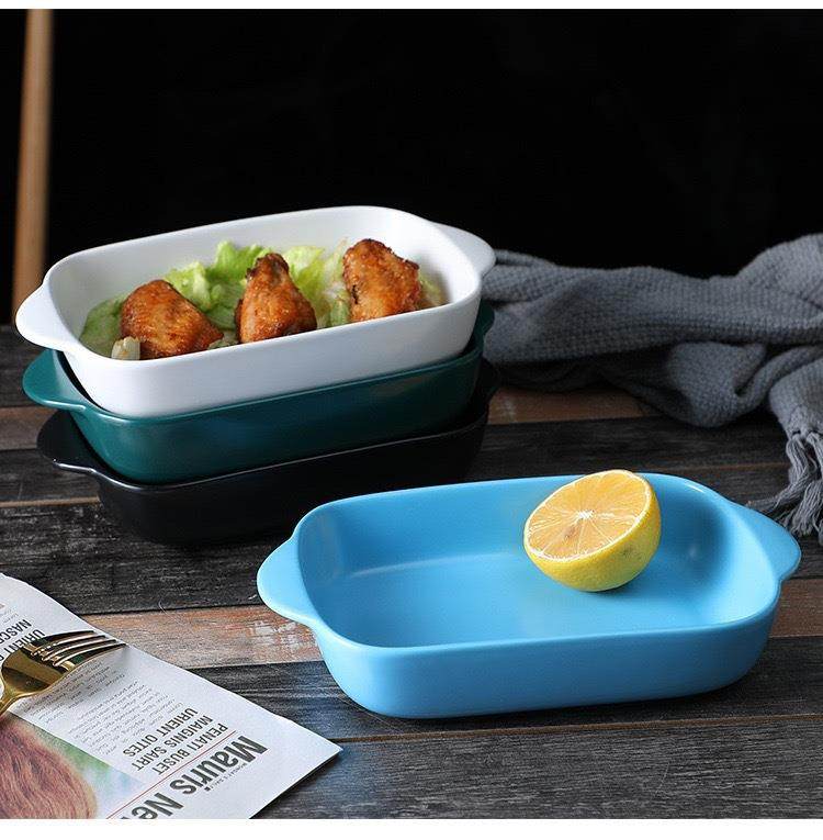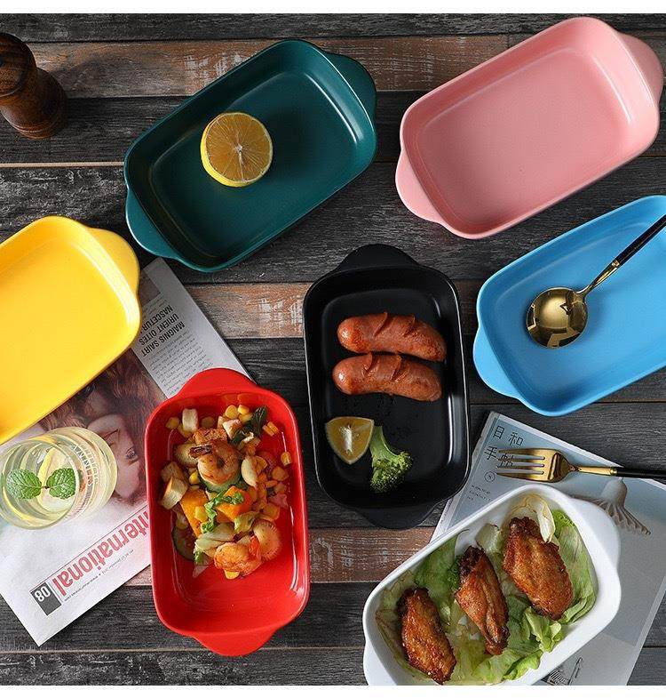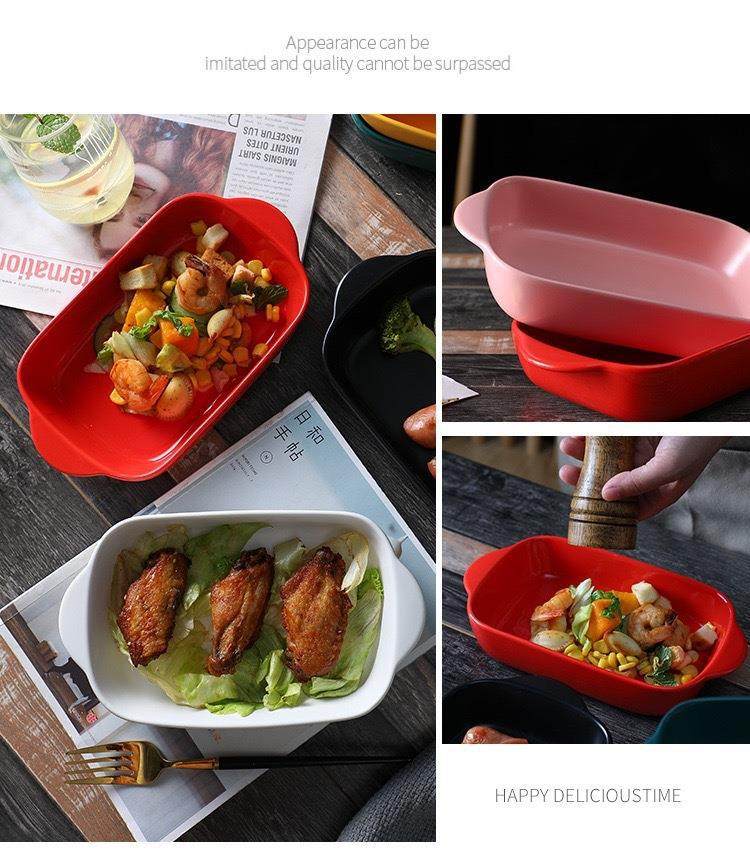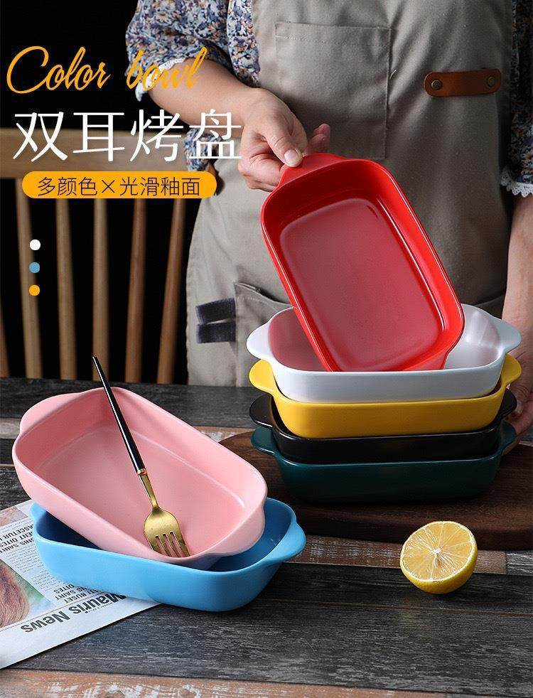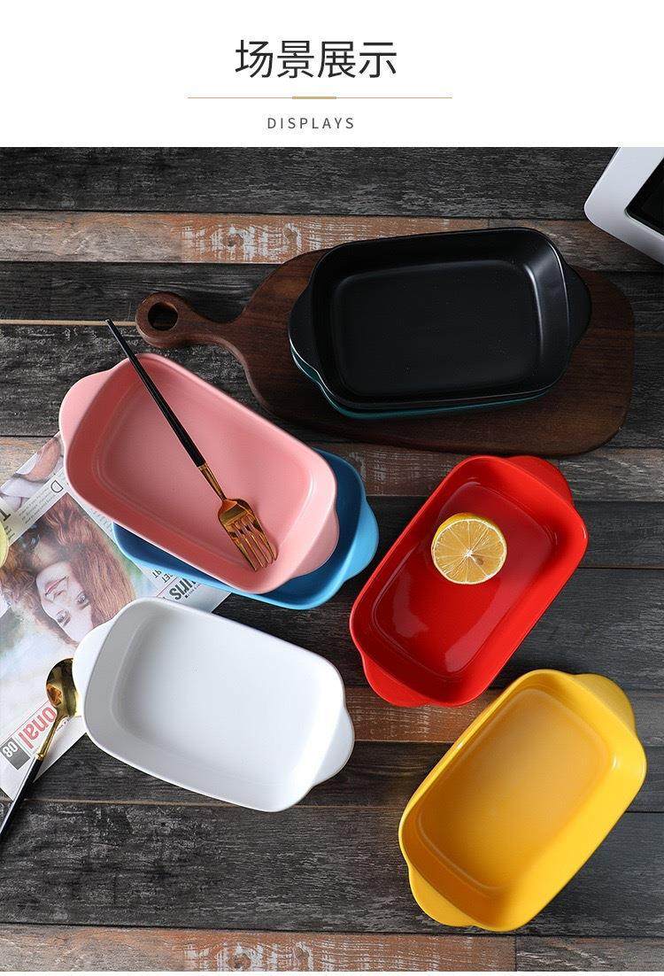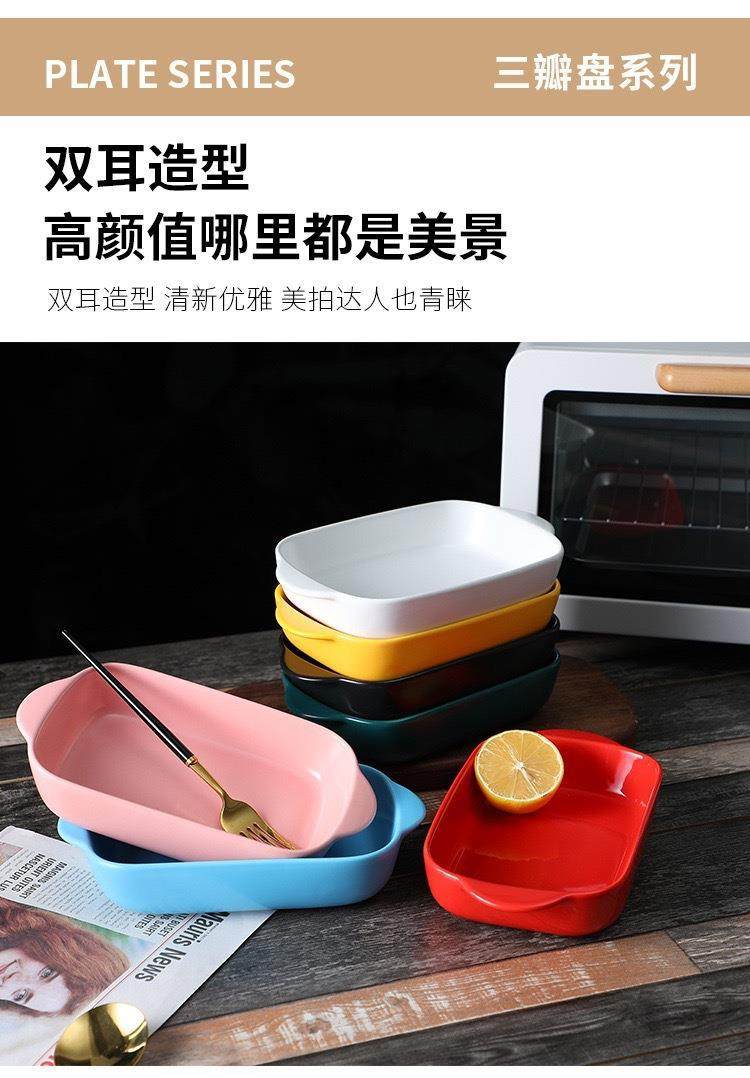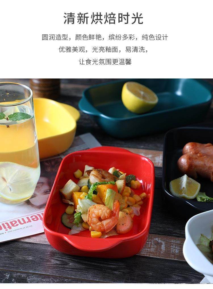 Baking Plate Baking Cheese Baked Rice Pasta Plate Bowl Binaural Long Plate Baking Bowl Oven Household Tableware Ceramic Plate