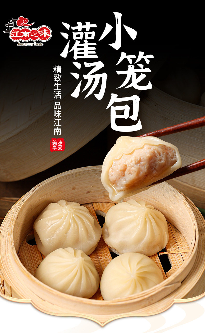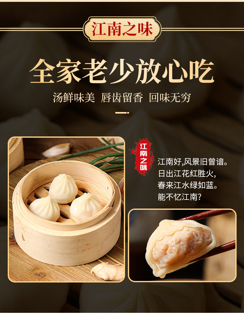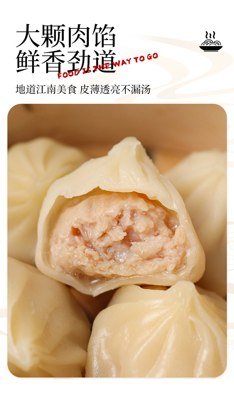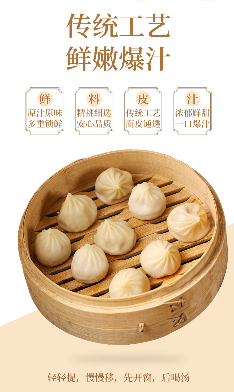 Jiangnan Flavor Su-Style Xiaolongbao (Steamed Dumplings) Frozen Fresh Meat Soup Dumplings Frozen Pastry Morning Tea Snack Breakfast Semi-Finished Product