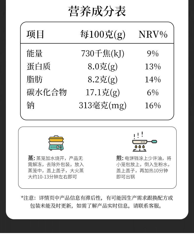 | Raw materials and ingredients | Pork, water, wheat flour, starch, onion, ginger, etc |