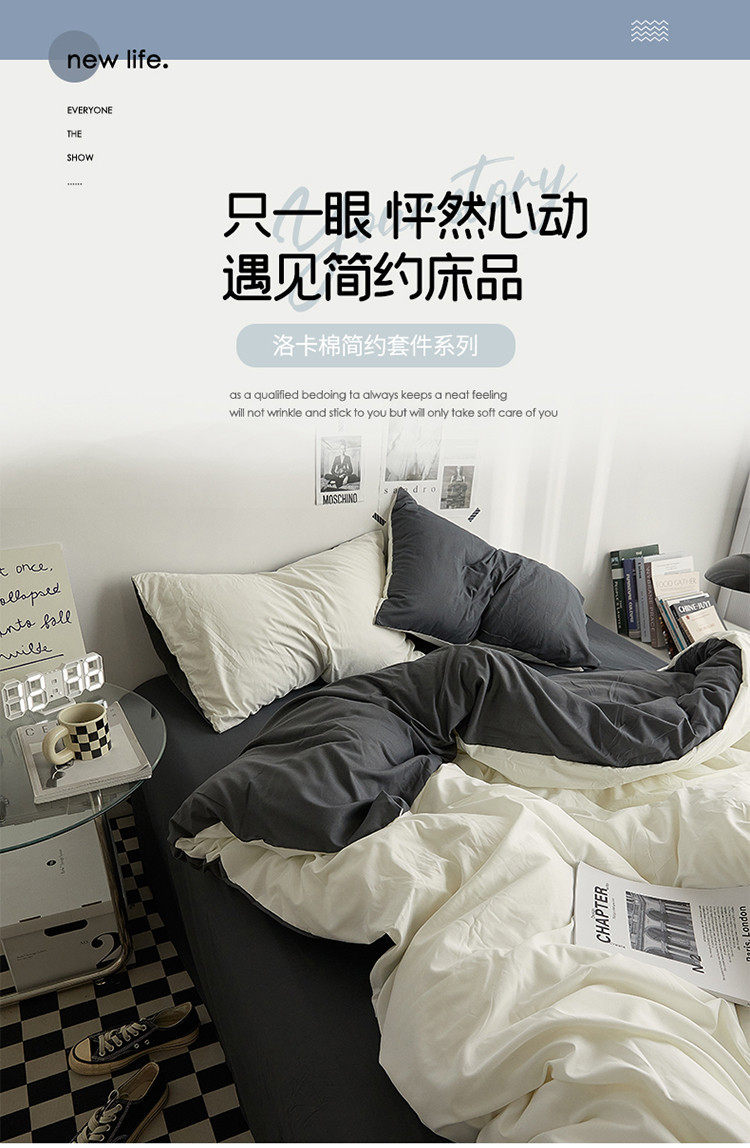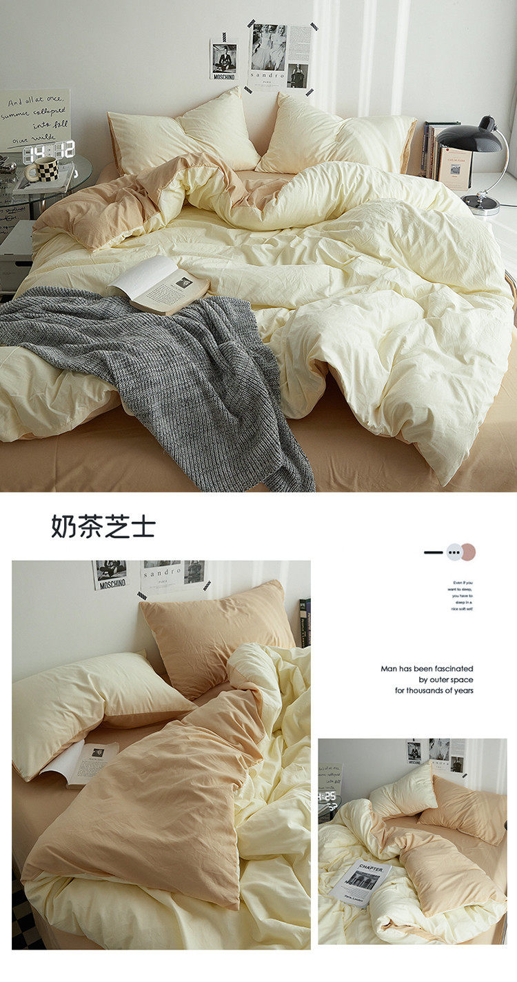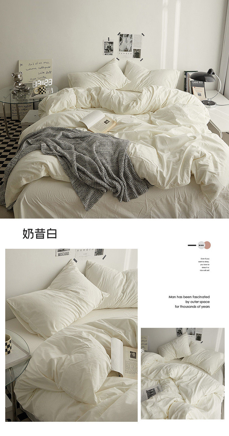 Ins Style Pure Color Four-Piece Student Dormitory Three-Piece Bedding Set Quilt Cover Fitted Sheet Washed Cotton Wholesale