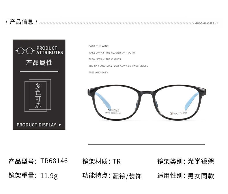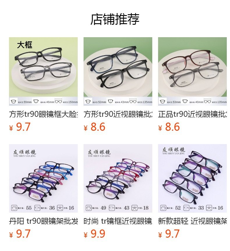 Danyang tr90 myopia glasses wholesale 68146 men's and women's small face full frame glasses Youshun glasses frame TR