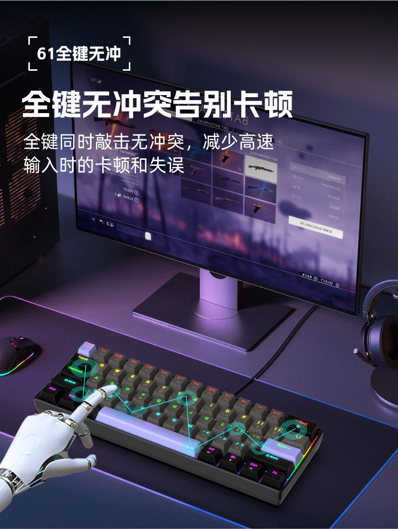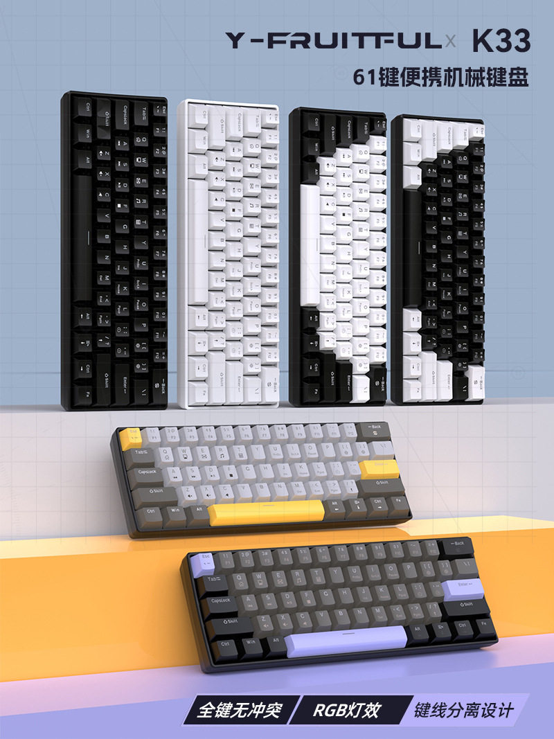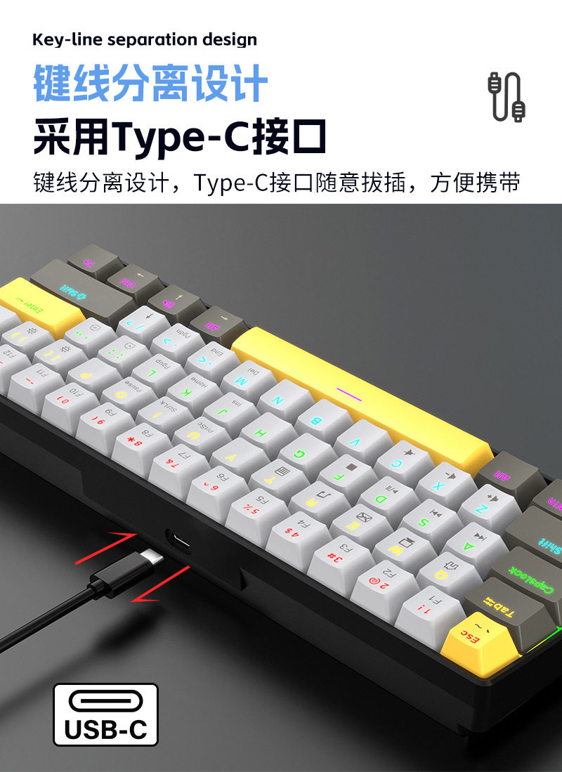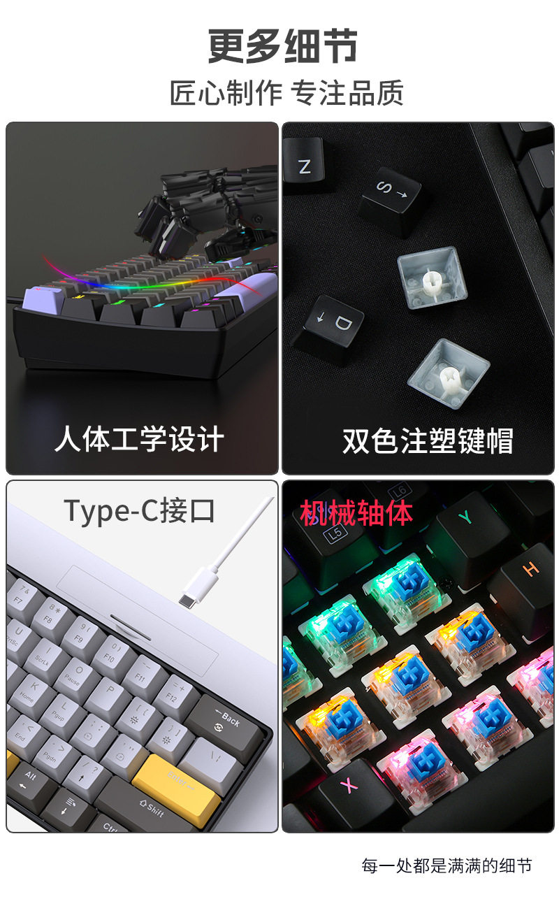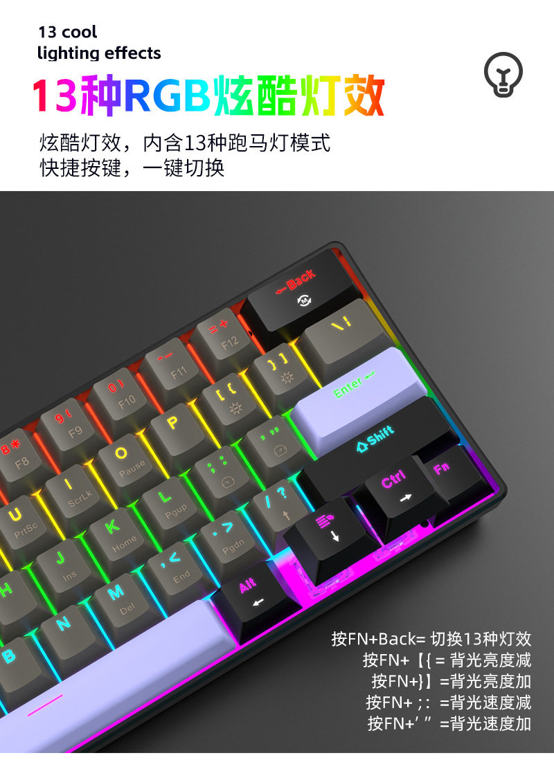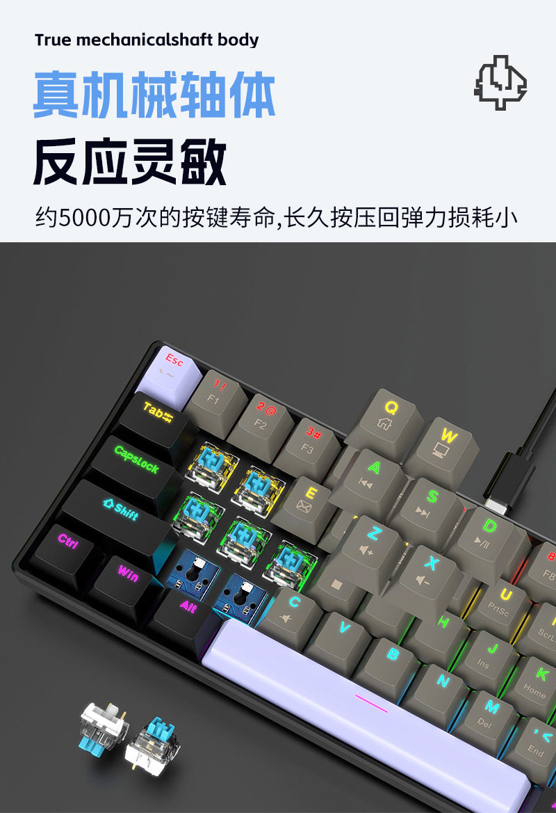 | Color | 61-key black mechanical keyboard,61-key white mechanical keyboard,61-key black and white color matching mechanical keyboard,61-key white and black color matching mechanical keyboard,61-key gray-yellow stacked rhyme,61 key dark tide purple realm |