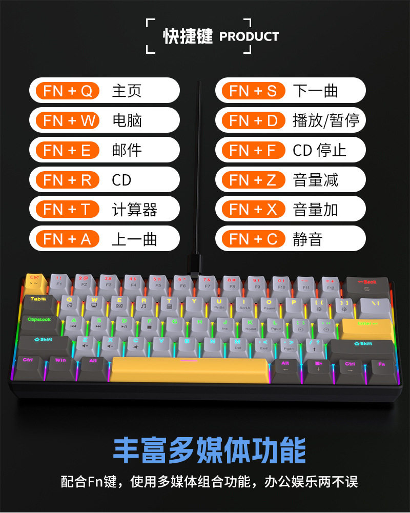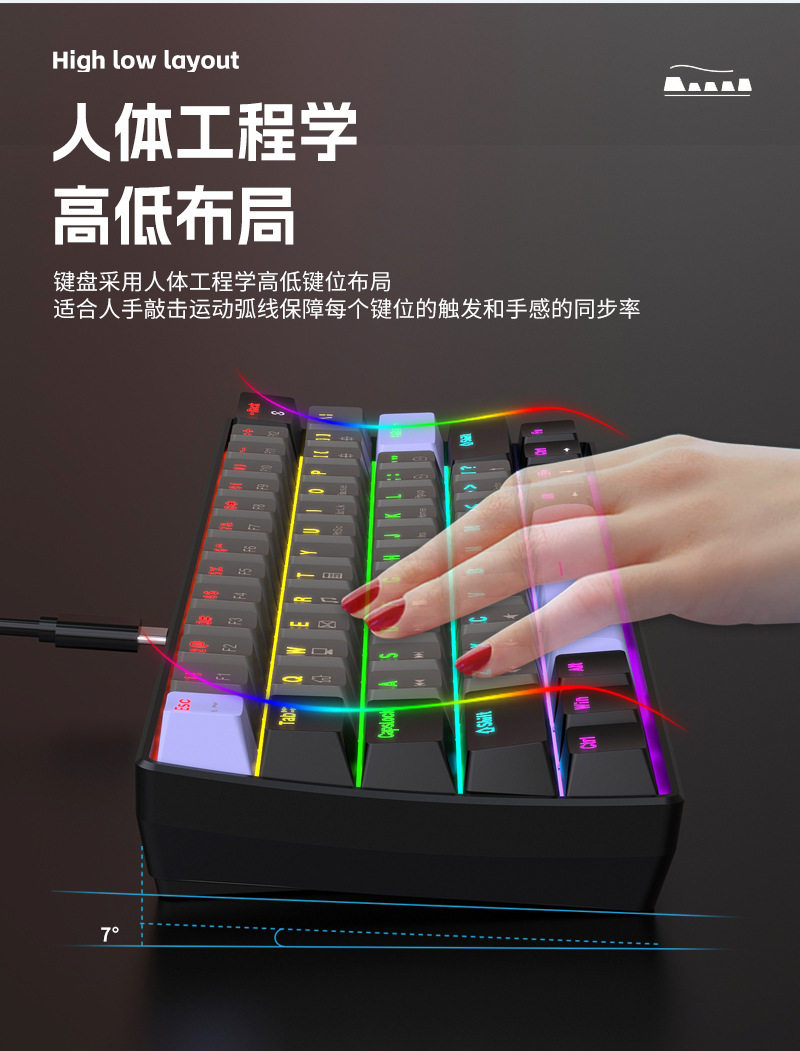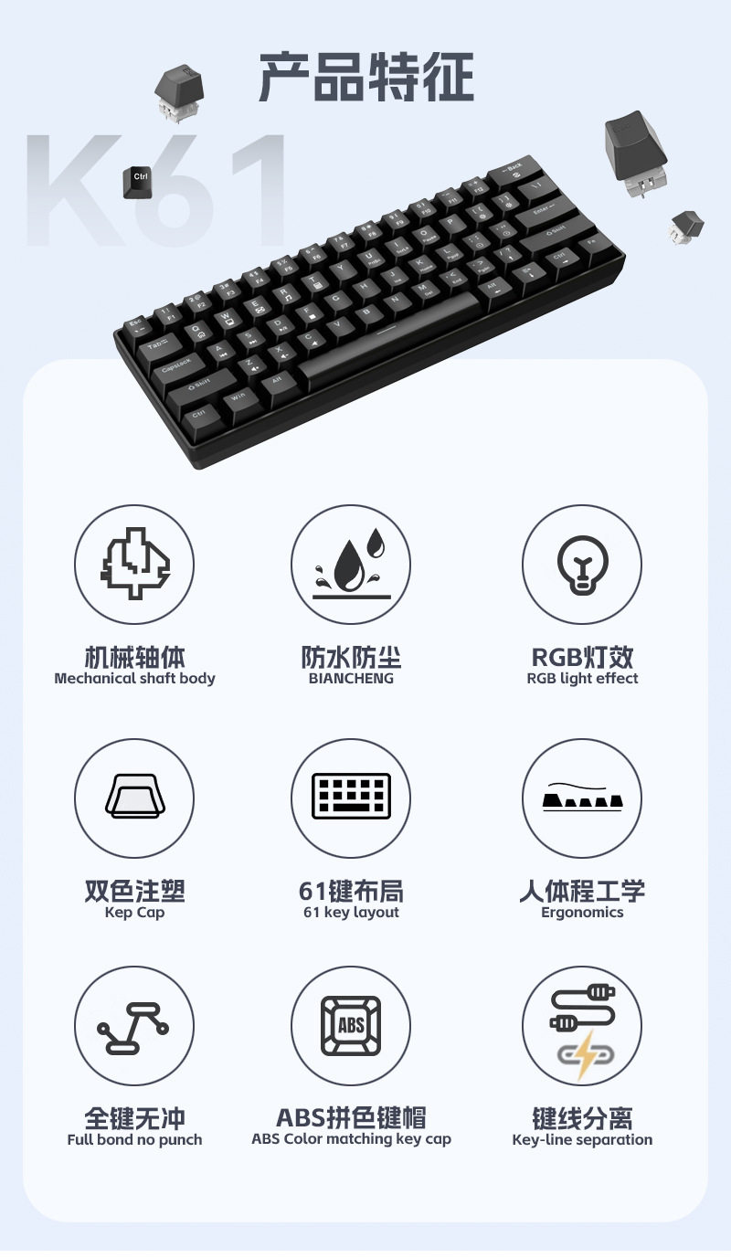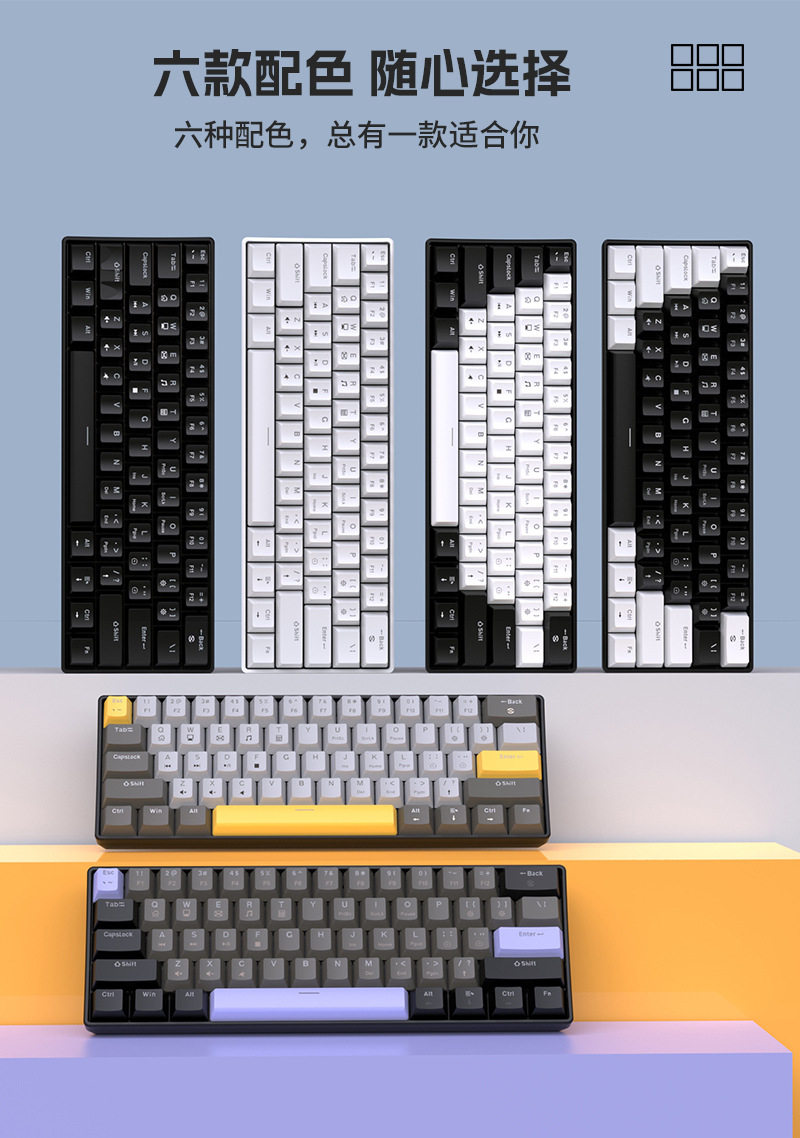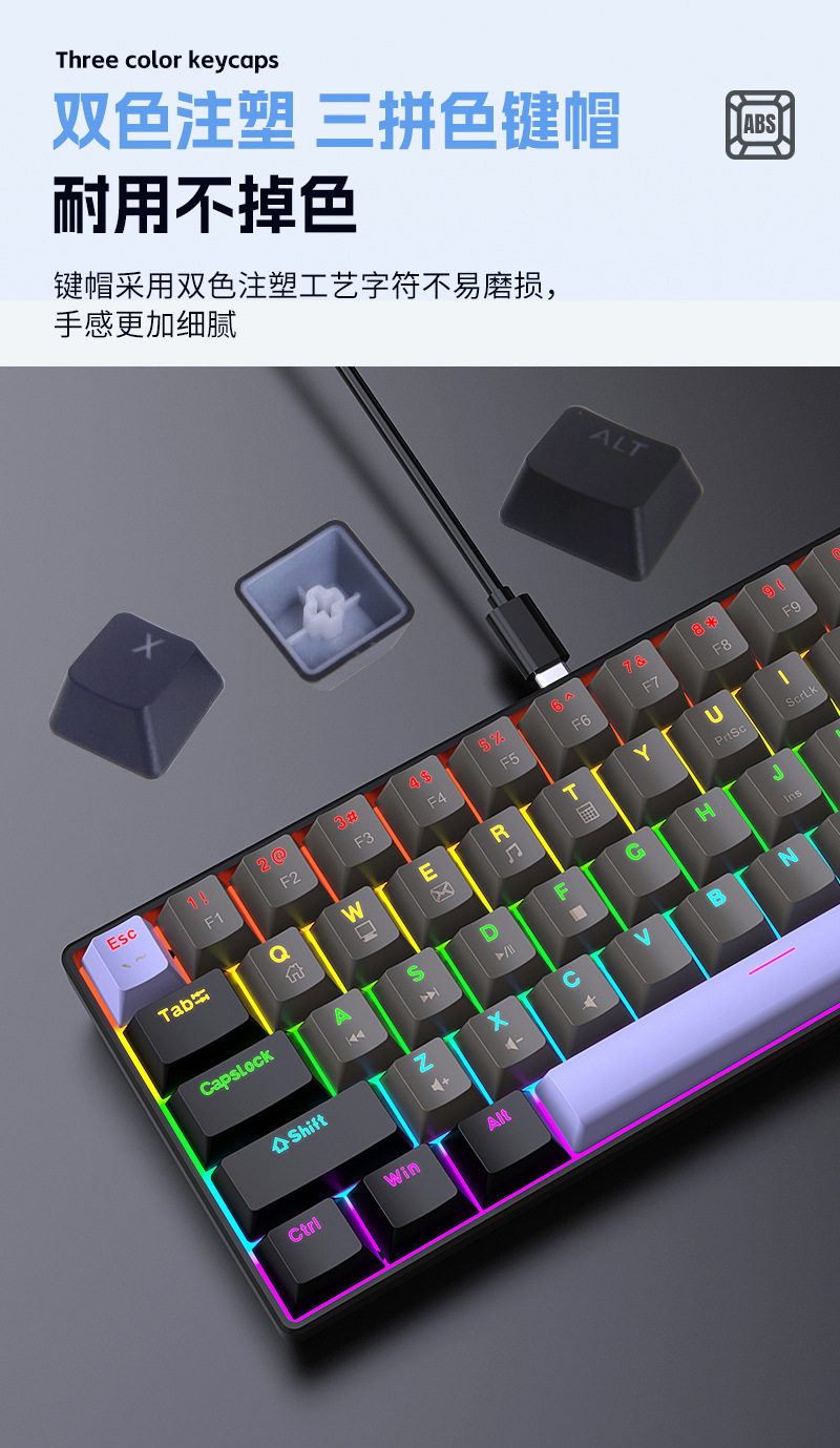| Color | 61-key black mechanical keyboard,61-key white mechanical keyboard,61-key black and white color matching mechanical keyboard,61-key white and black color matching mechanical keyboard,61-key gray-yellow stacked rhyme,61 key dark tide purple realm |