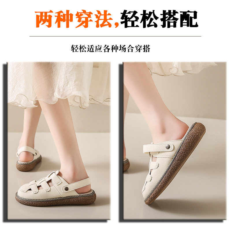 Baotou Sandals for Women, Clogs, 2024 Summer New Style, Outdoor Thick-Soled Half-Slippers, Beach Women's Roman Sandals, Trendy