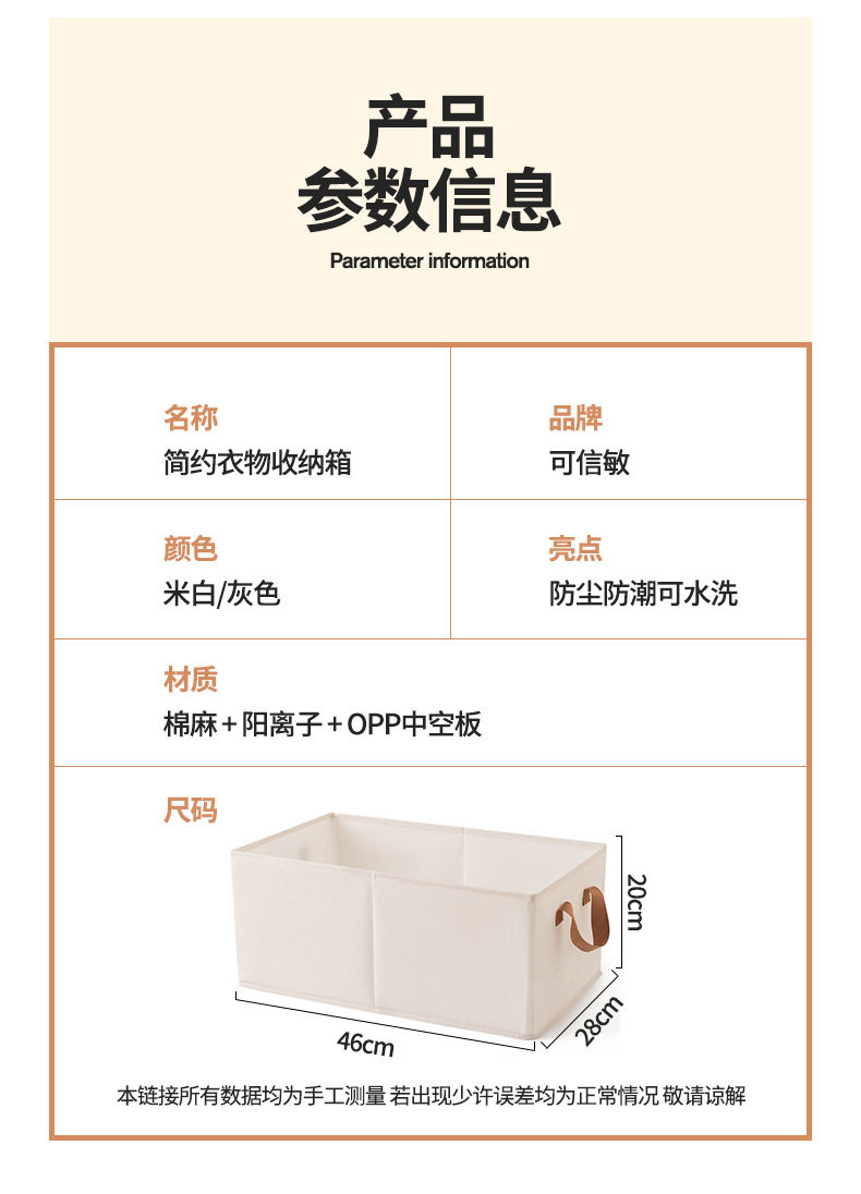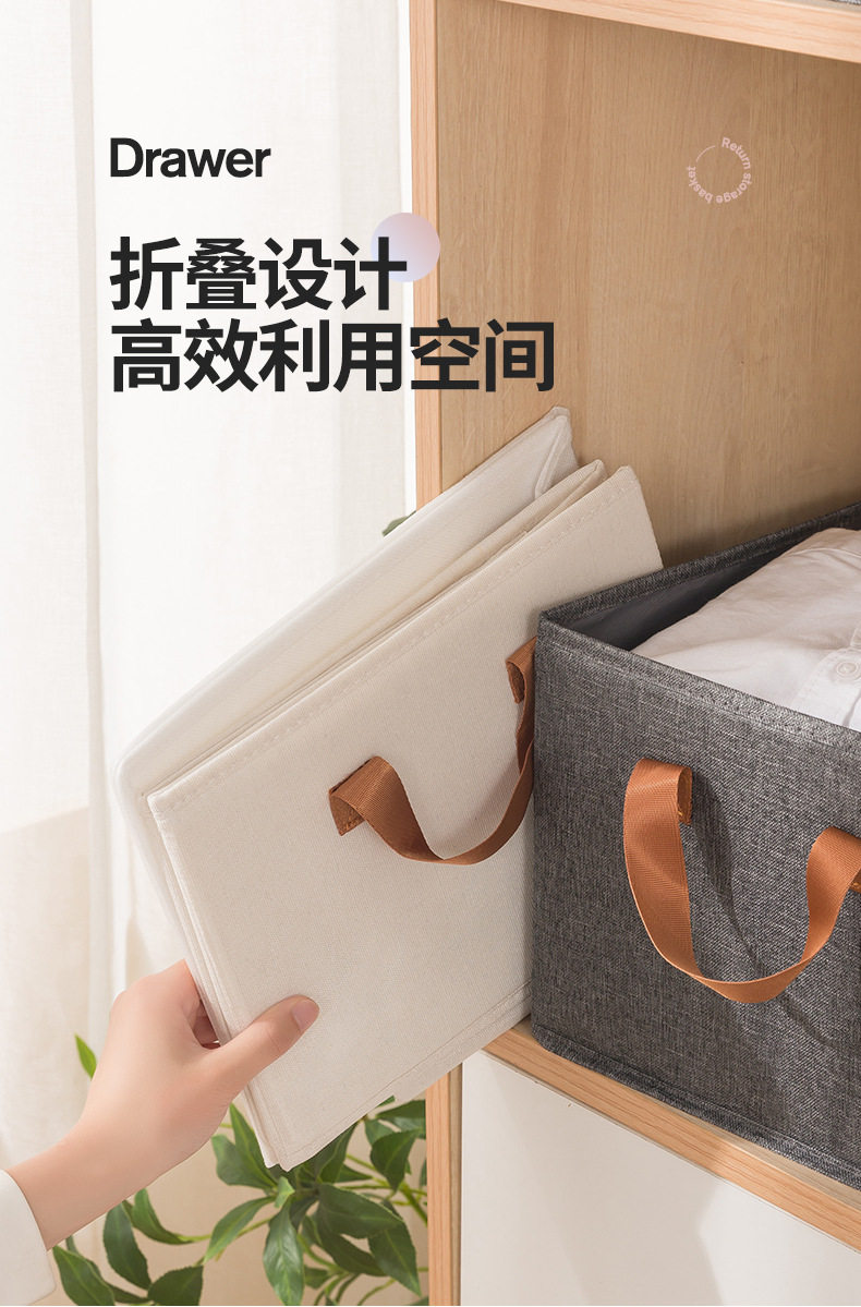 Bedroom Cotton and Linen Cationic Fabric Storage Box for Home Daily Use, Movable Storage Box with Large Capacity Drawer Storage Box