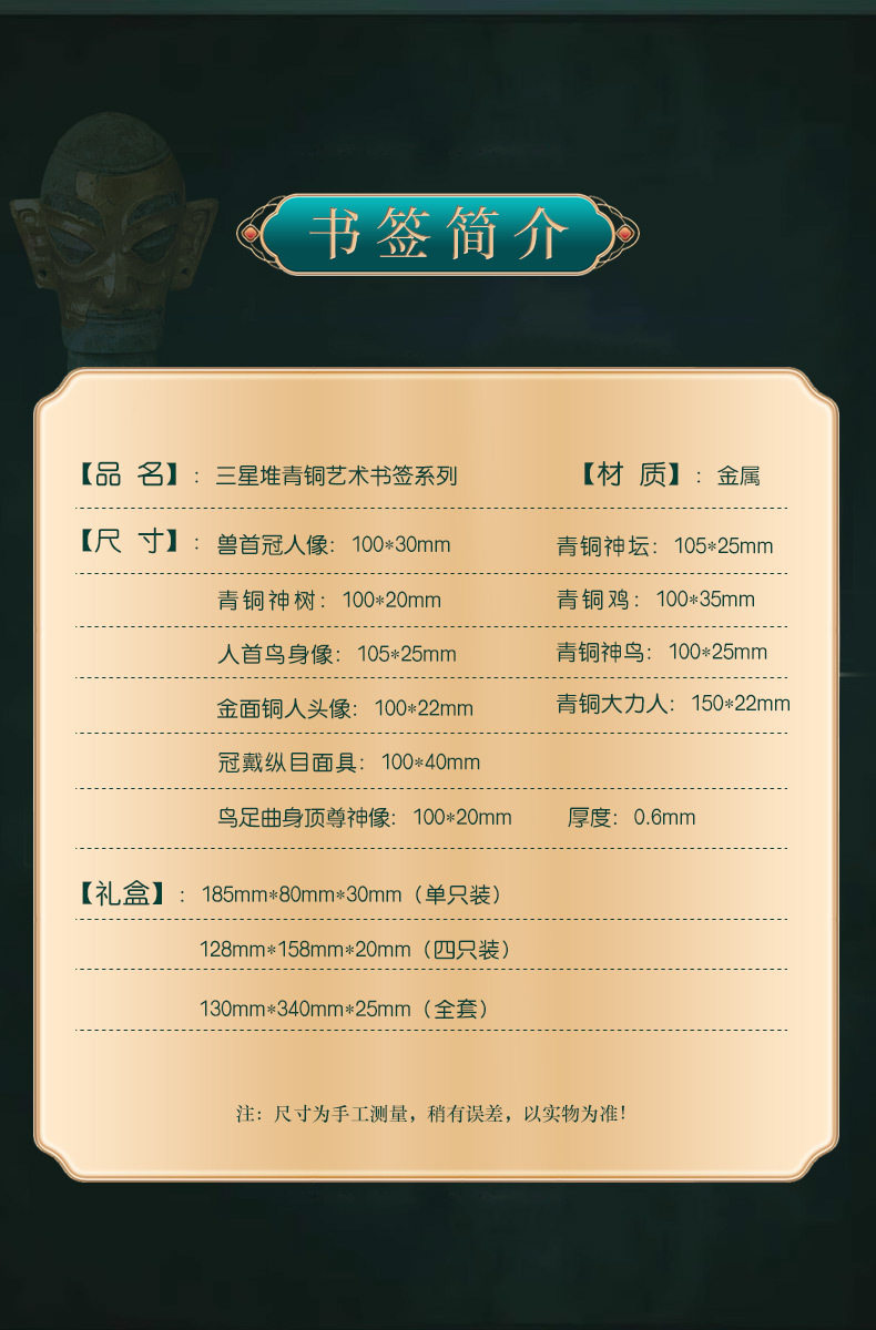 | Color | Sanxingdui Bookmark-Crown Wear Vertical Mask,Sanxingdui Bookmark-Gold Face Bronze Head,Sanxingdui bookmark-bird foot curved body top statue idol,Sanxingdui Bookmark-Bronze Liren,Sanxingdui Bookmark-Bronze Chicken,Sanxingdui Bookmark-Bronze Human Head Bird Figure,Sanxingdui Bookmark-Bronze Bird,Sanxingdui Bookmark-Bronze Divine Tree,Sanxingdui Bookmark-Bronze Altar,Sanxingdui Bookmark-Bronze Beast Crown Portrait,Sanxingdui Bookmark 4 Pack (A),Sanxingdui Bookmark 4 Pack (Section B),Sanxingdui full set of bookmarks (10 pieces),New Sanxingdui Bookmark-Crown Wear Vertical Mask (Cardboard),New Sanxingdui Bookmark-Gold Face Bronze Head (Cardboard),New Sanxingdui Bookmark-Bronze Dhalirin (cardboard),The new Sanxingdui bookmark-bronze top statue kneeling portrait (cardboard),New Sanxingdui Bookmark-Bronze Man Head Bird Figure (Cardboard),New Sanxingdui Bookmark-Bronze Bird (Cardboard Pack),New Sanxingdui Bookmark-Bronze Myth (Cardboard Pack),New Sanxingdui Bookmark-Bronze Divine Tree (Cardboard Pack),New Sanxingdui Bookmark-Bronze Altar (cardboard),New Sanxingdui Bookmark-Bronze Beast Crown Figure (cardboard),New Sanxingdui Bookmark-Five Pack (C),New Sanxingdui Bookmark-Five Pack (D),New Sanxingdui Bookmark -10 Pack (E) |