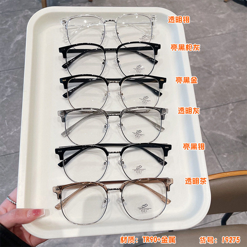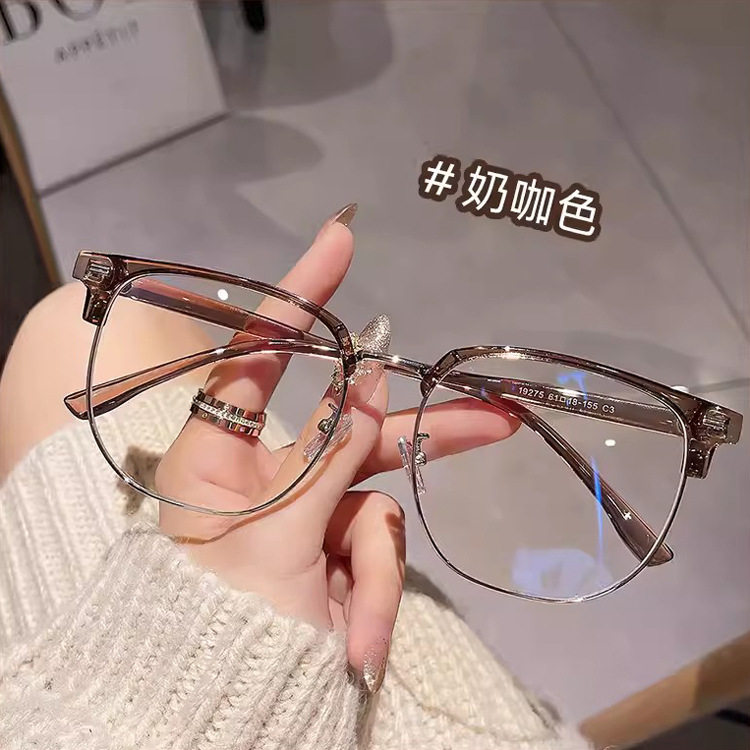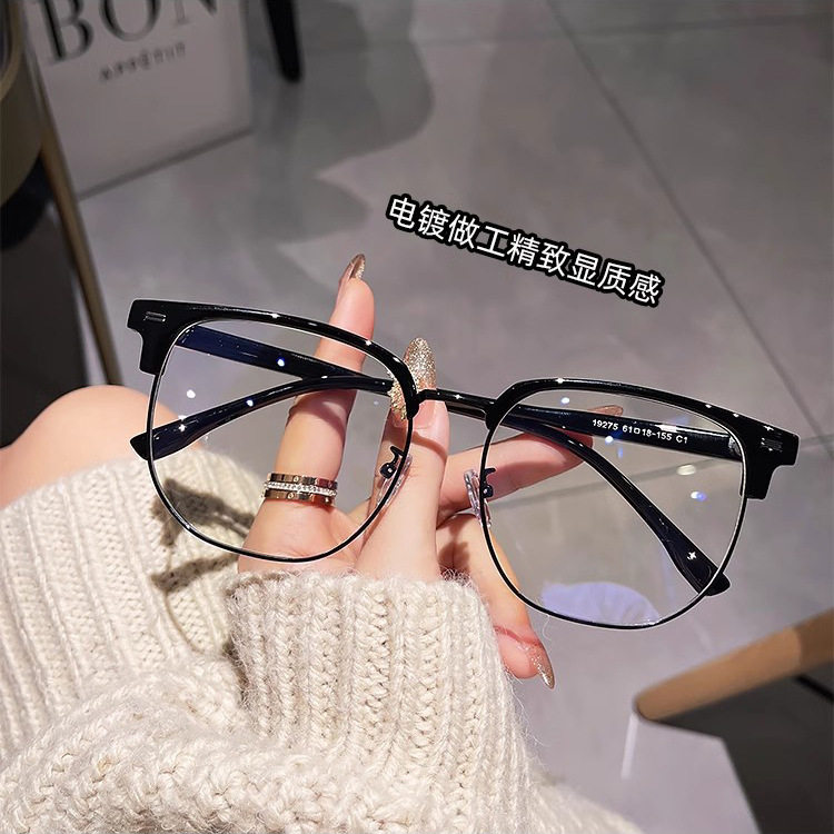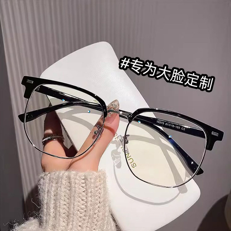 New large size 15.8cm myopia frame frame men's large face half frame flat lens can be equipped with myopia lens women