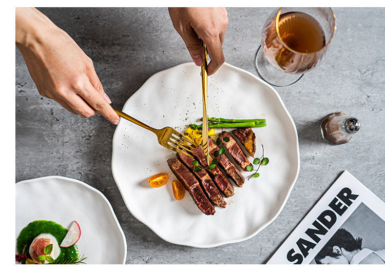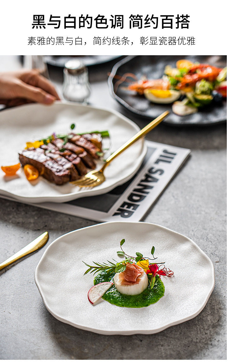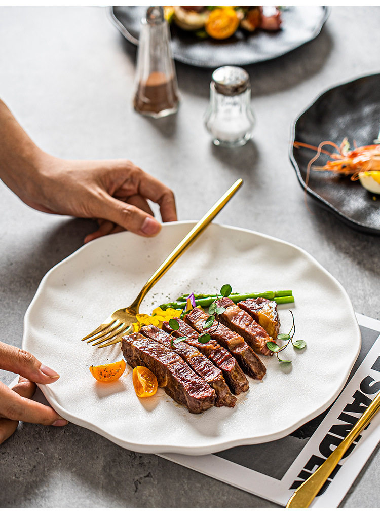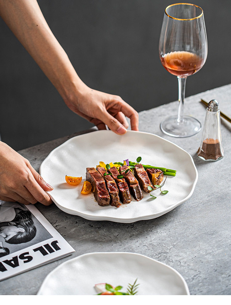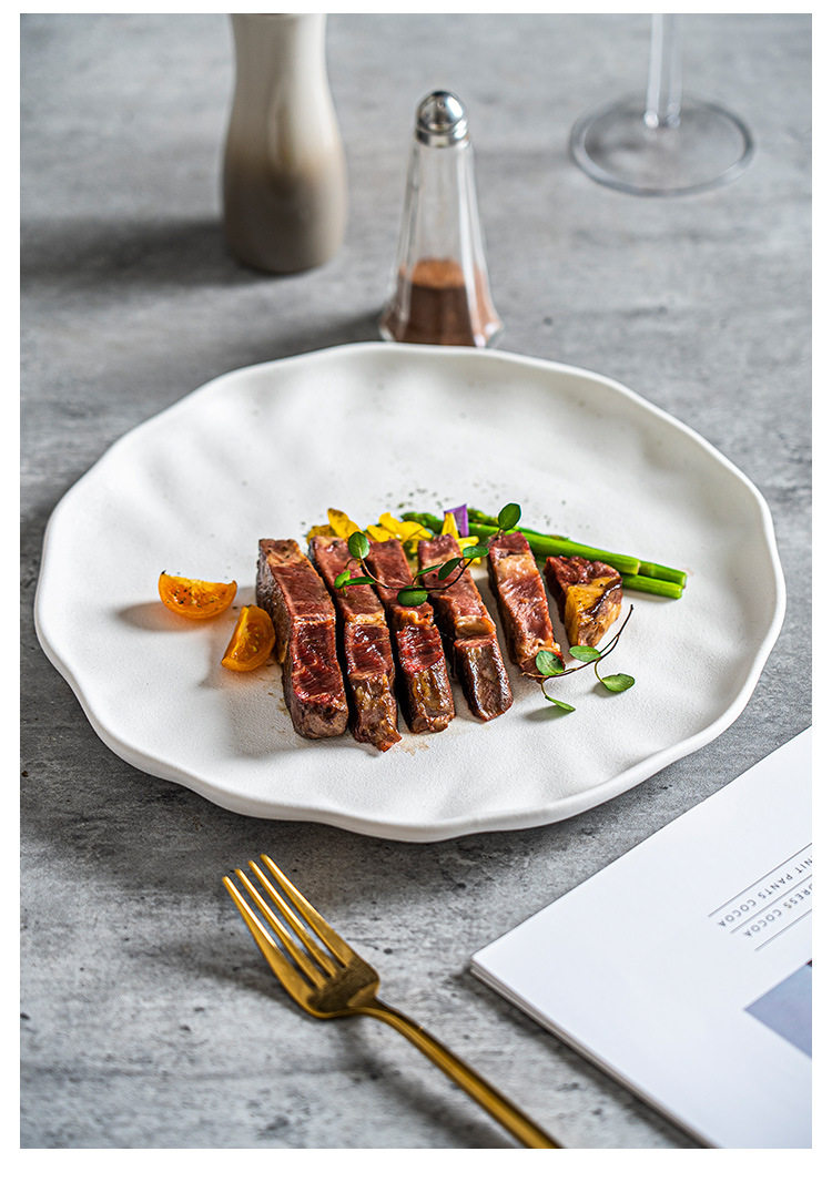 Steak Plate Ceramic Plate Household Set Advanced Sense Tableware Spaghetti Plate Round Plate Commercial Western Food Plate Dish Plate