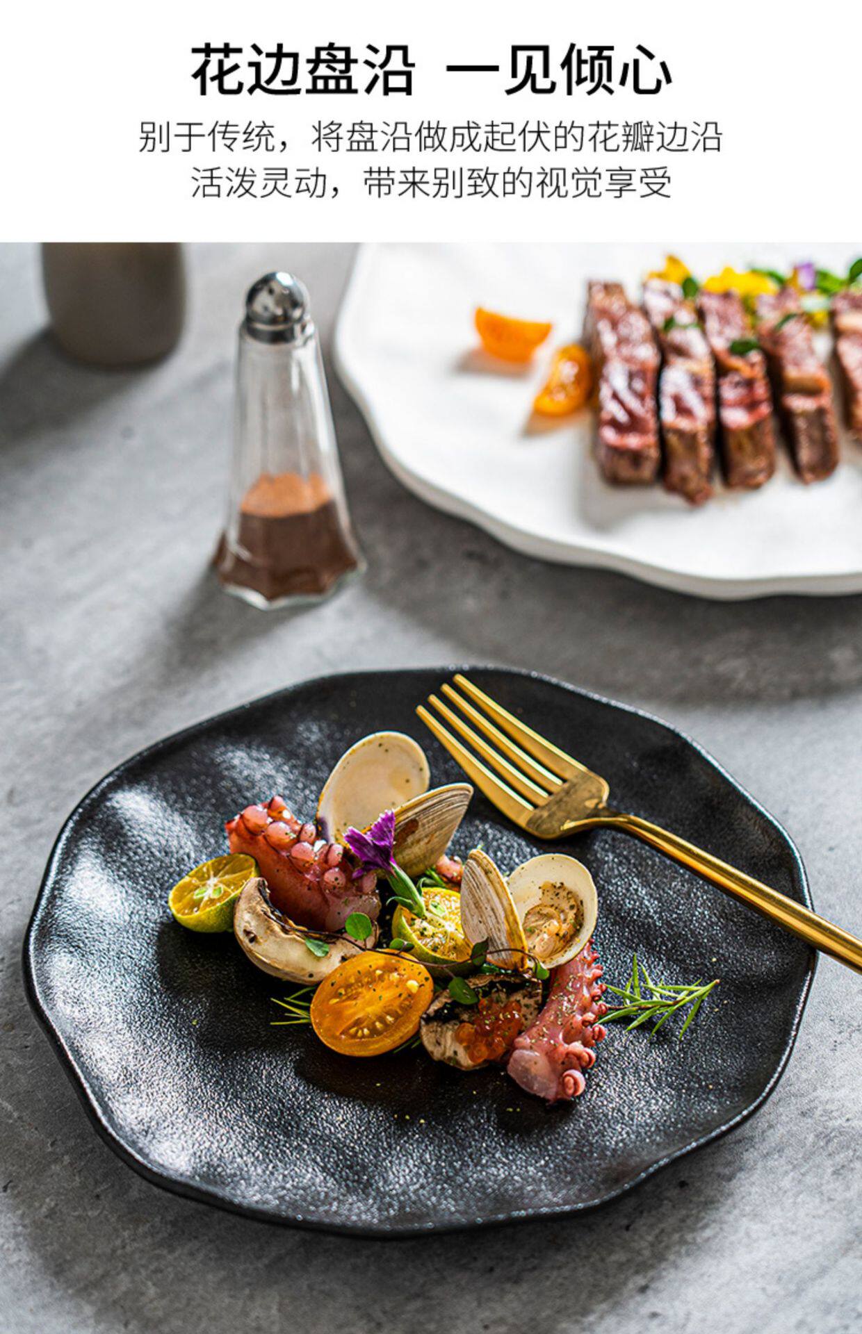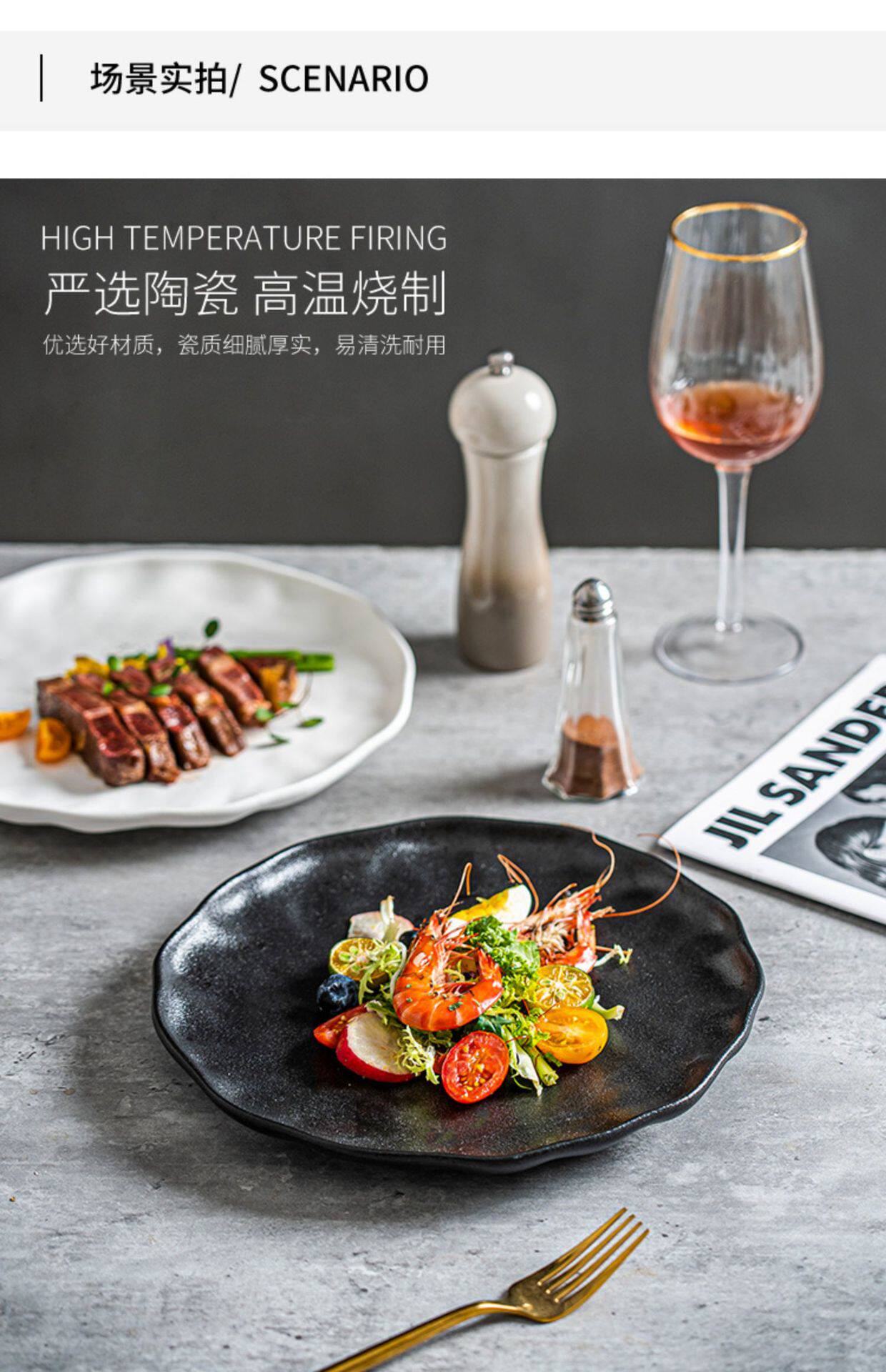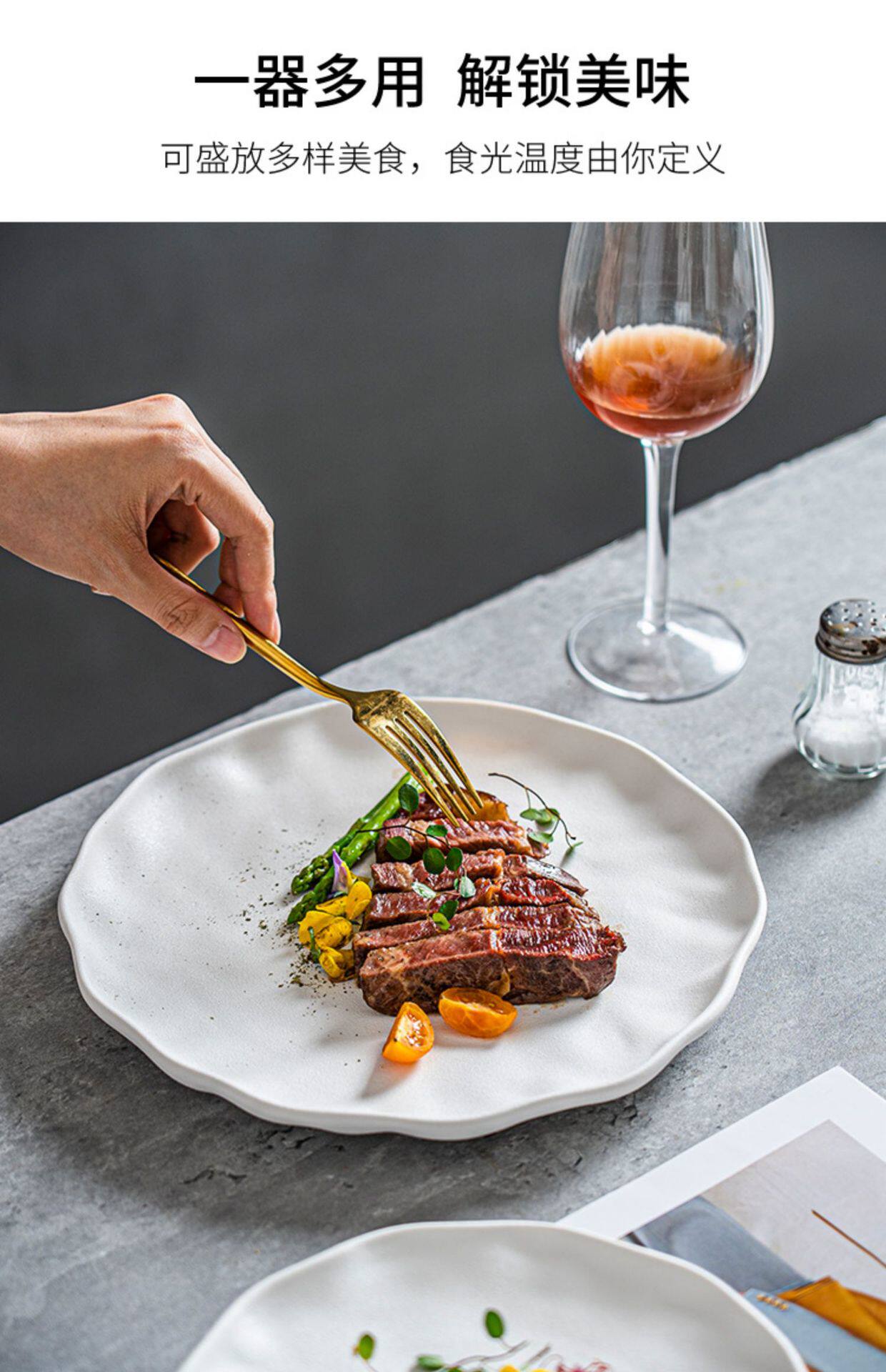 Steak Plate Ceramic Plate Household Set Advanced Sense Tableware Spaghetti Plate Round Plate Commercial Western Food Plate Dish Plate