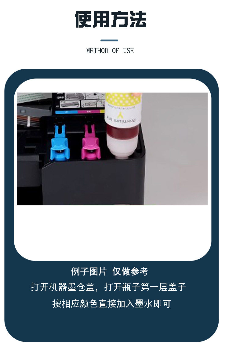 | Color | Black ink 135ml,Blue ink 70ml,Yellow ink 70ml,Red ink 70ml |