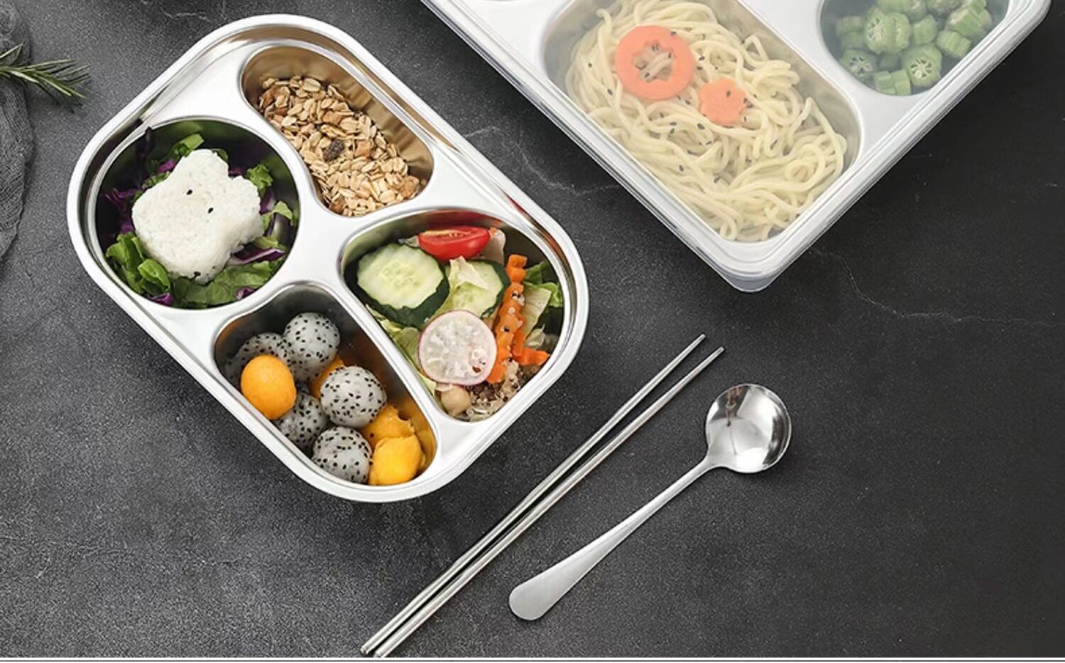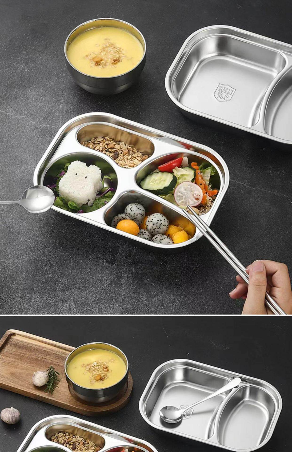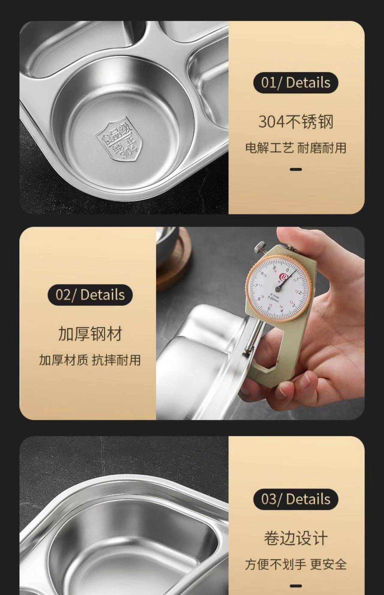 Stainless Steel Indonesian Lunch Box Student Canteen Restaurant Dinner Plate Divided Stainless Steel Fast Food Plate Divided Rice Plate