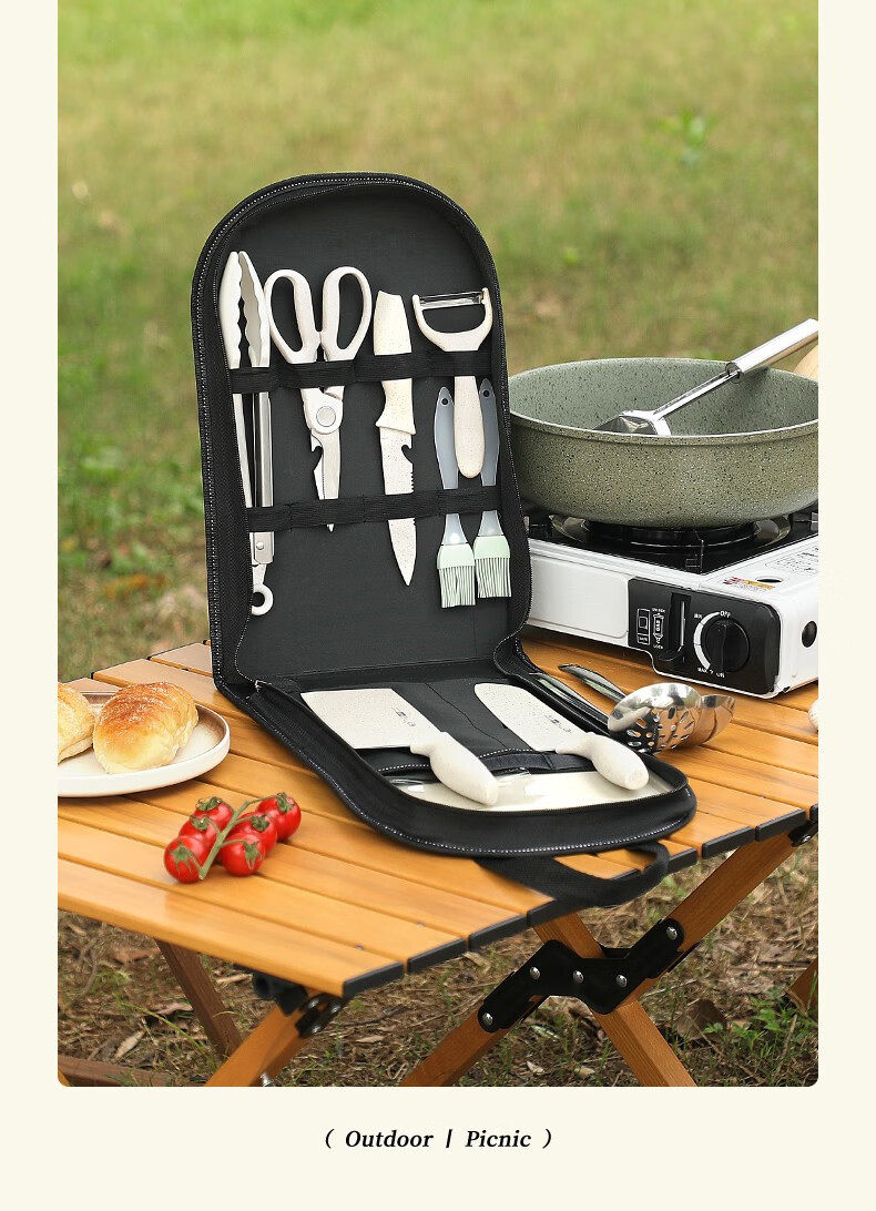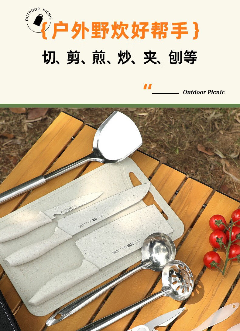 Spot wholesale outdoor camping kitchenware knife set stainless steel camping equipment outdoor storage bag combination set