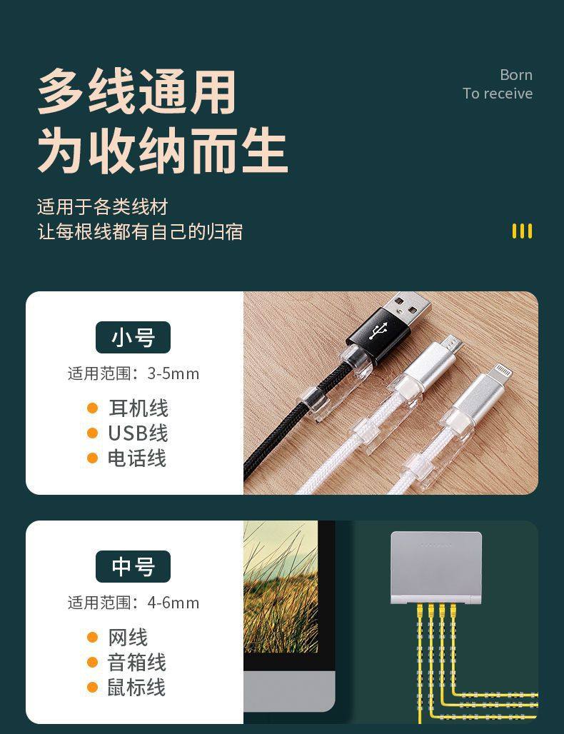 Factory straight hair seamless nail-free wire organizer desktop data cable storage car wire holder