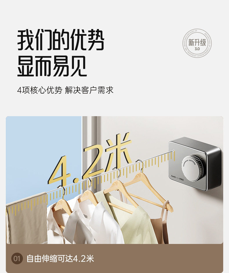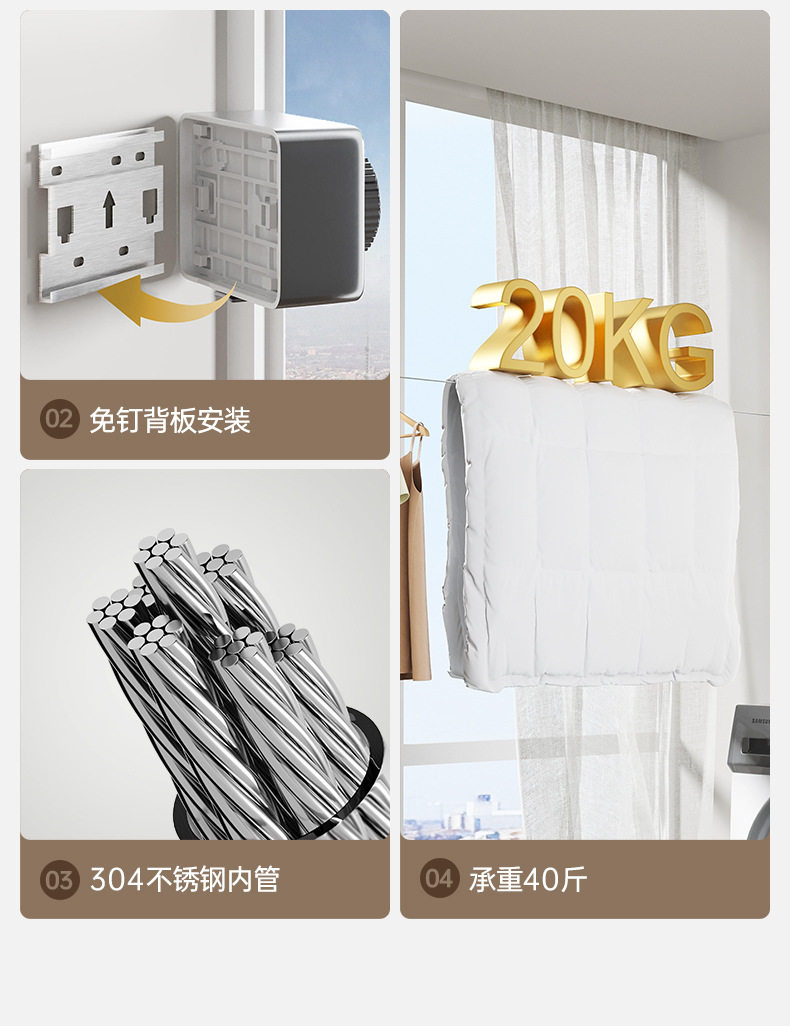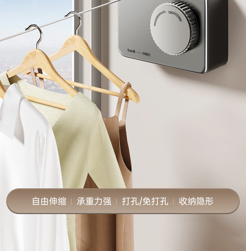Invisible Telescopic Clothesline Clothes Drying Indoor Non-Punch Bathroom Telescopic Balcony Wire Rope Home Drying