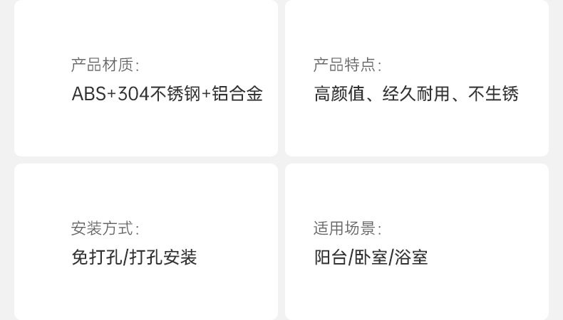 | Material | ABS +304 stainless steel + aluminum alloy |