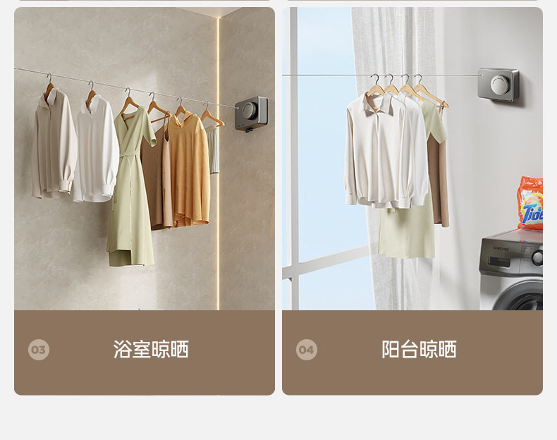 | Type of drying | Clothesline, clothes drying rack, telescopic clothesline, invisible clothesline |