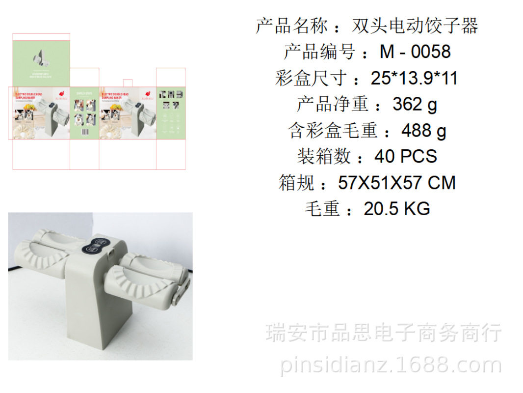 | Specifications | Double-headed dumpling machine,Single head dumpling machine white,Single head dumpling machine green |