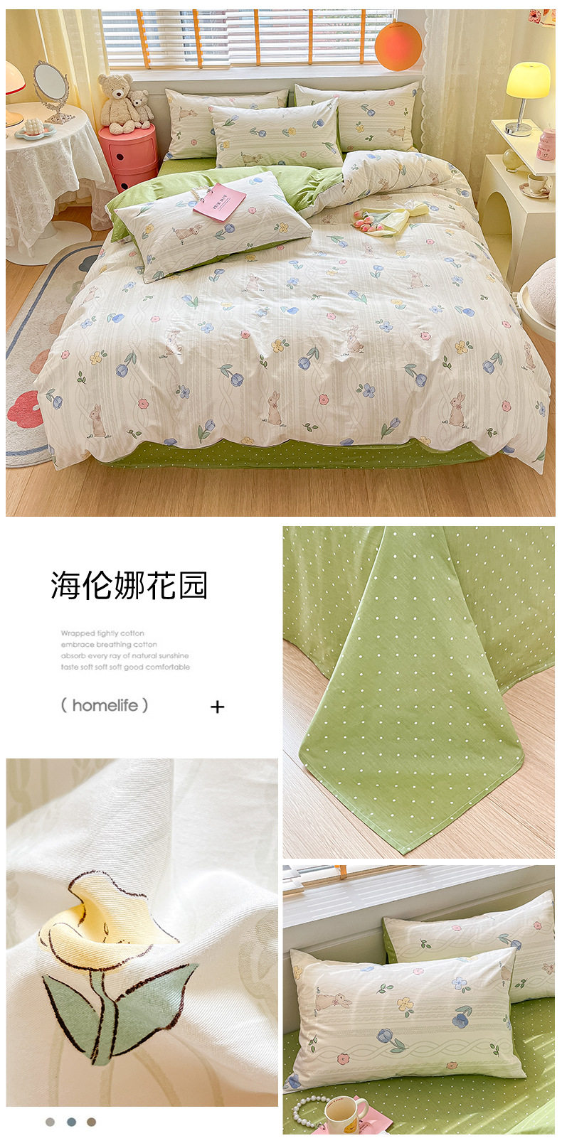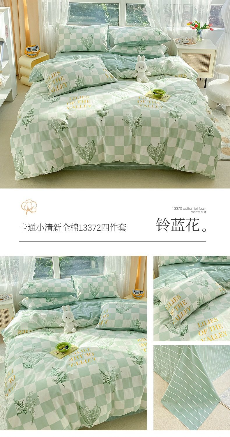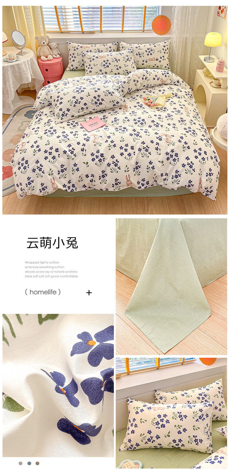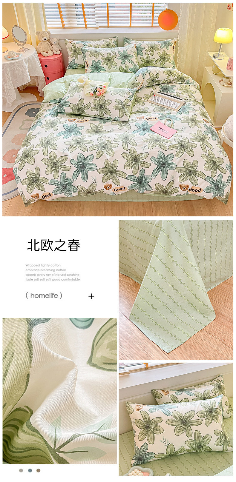 Ins Style Cotton Four-piece Set 100 Cotton Bed Sheet Quilt Cover Cotton Student Dormitory Three-piece Set Cotton Four-piece Set